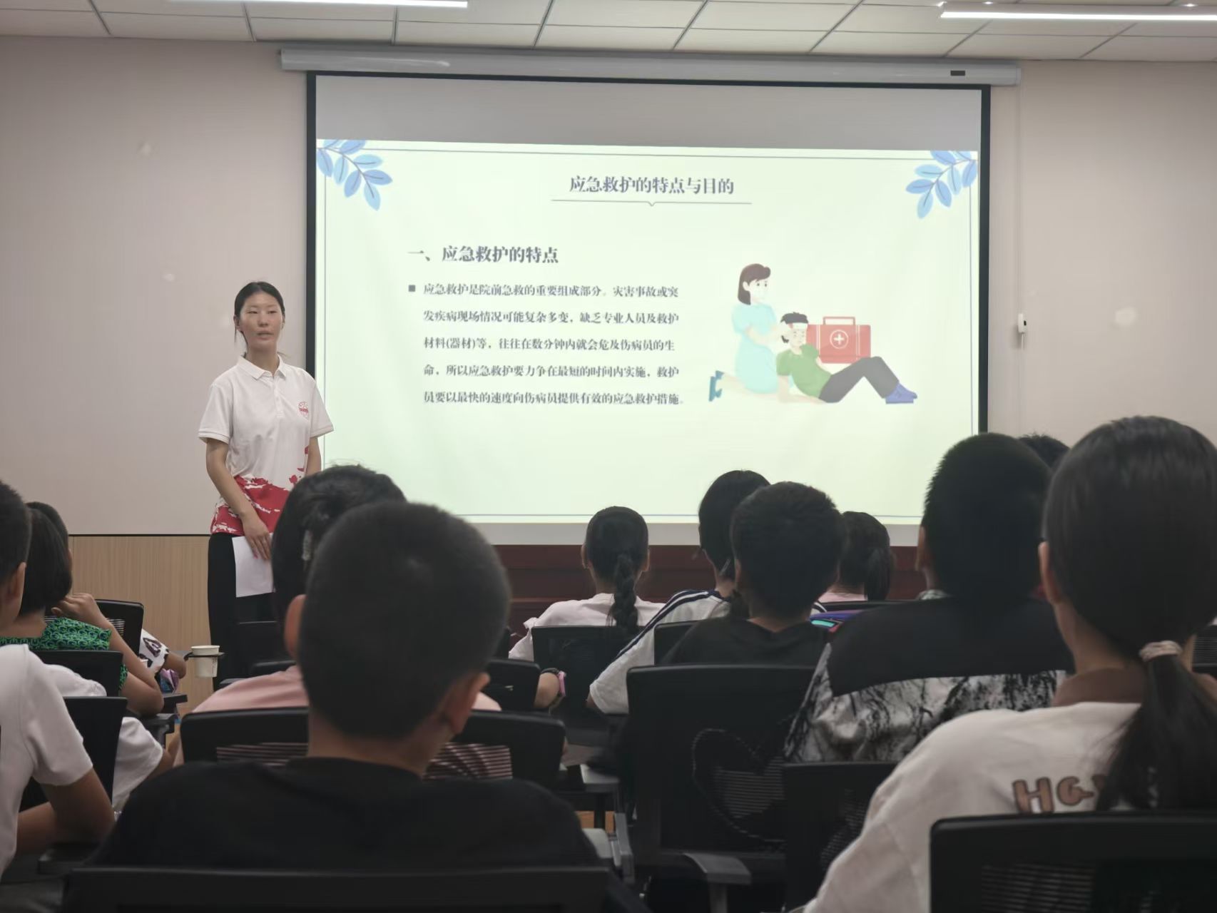 活動(dòng)現(xiàn)場(chǎng),主講人魏鈺橦對(duì)心肺復(fù)蘇、海姆立克法及傷口包扎等急救知識(shí)進(jìn)行了系統(tǒng)講解。通過(guò)用生動(dòng)的案例和通俗易懂的語(yǔ)言,將復(fù)雜的急救知識(shí)轉(zhuǎn)化為易于理解的實(shí)用技能,讓青少年對(duì)急救知識(shí)有了初步認(rèn)知。緊接著,預(yù)防食物中毒專題講解從食物選購(gòu)、儲(chǔ)存、加工等多個(gè)環(huán)節(jié)入手,為大家揭示了日常生活中容易忽視的食品安全隱患,傳授了科學(xué)有效的預(yù)防方法。