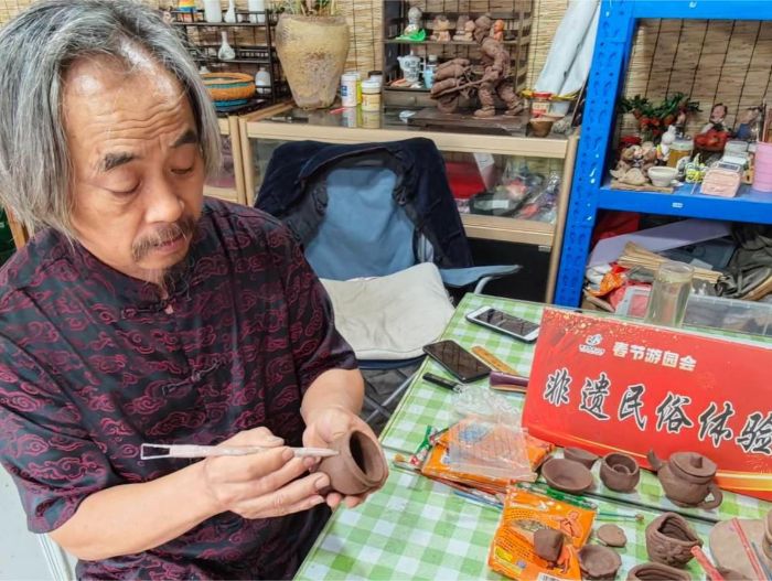 圖為李建東老師展示泥塑制作過程 王青青攝