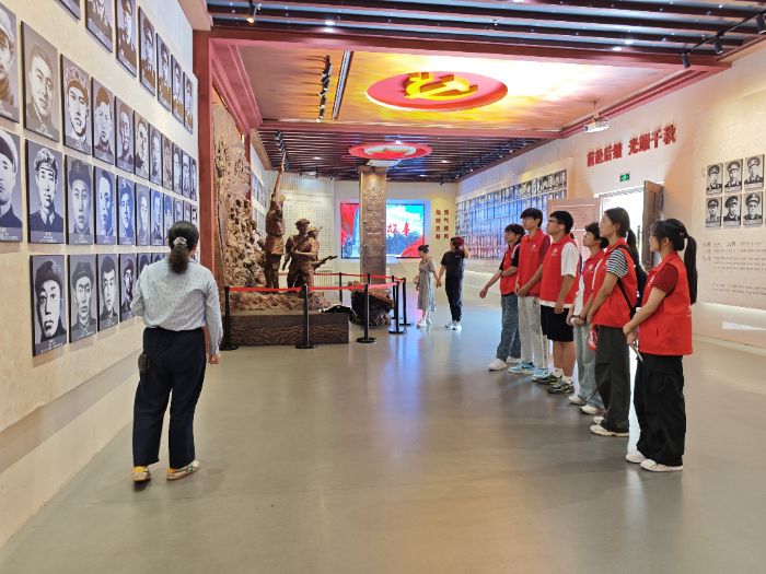 懷著無比崇敬的心情,隊員們步入金寨縣紅軍紀念堂。這里排列了詳實的史料和烈士畫像,在講解員的深情講述下,那段波瀾壯闊、艱苦卓絕的革命歲月鮮活地呈現(xiàn)在隊員們的眼前。隊員們被革命先輩“堅守信念、胸懷全局、團結一心、勇當前鋒”的大別山精神深深震撼,認真聆聽講解,不時駐足凝視,在歷史的回望中汲取信仰的力量,筑牢理想的根基。