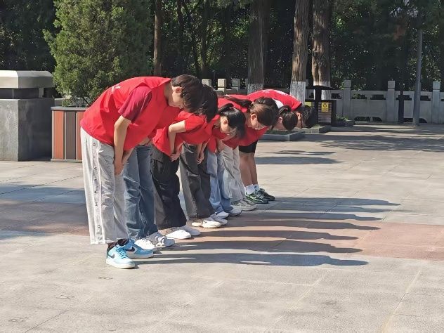 圖為隊員們在革命英雄紀念碑前鞠躬 胡妍攝