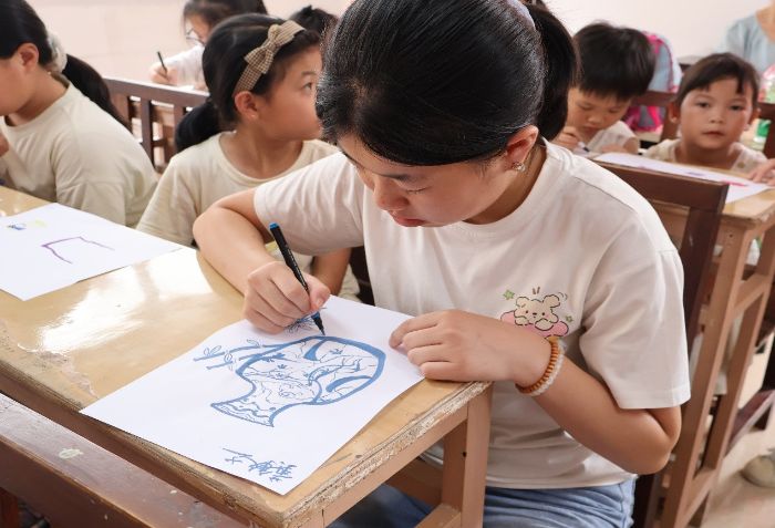 從瓷都汲取智慧,向未來(lái)傳遞薪火。實(shí)踐隊(duì)員們將德化之行的文化收獲化作生動(dòng)課堂。在瓷文化講解環(huán)節(jié),實(shí)踐隊(duì)員以圖文并茂的方式,結(jié)合實(shí)物展示,詳細(xì)解讀了德化白瓷"白如玉,響如磬"的特色,并帶領(lǐng)小朋友們了解了從選土到成器的完整工藝流程;在知識(shí)競(jìng)賽搶答環(huán)節(jié),小朋友們積極踴躍參與,在競(jìng)答中深化了對(duì)陶瓷文化的理解;在漢字拆解活動(dòng)中,隊(duì)員們引導(dǎo)小朋友們拆解"瓷""釉"等字,幫助小朋友們?cè)谟螒蛑懈形蚣亦l(xiāng)瓷文化的獨(dú)特魅力;最后的創(chuàng)意設(shè)計(jì)環(huán)節(jié)為兒童提供了藝術(shù)表達(dá)的平臺(tái),他們用畫筆勾勒出心中的陶瓷藝術(shù)品,展現(xiàn)出對(duì)傳統(tǒng)工藝的獨(dú)特理解和創(chuàng)新思考。通過(guò)這一系列活動(dòng),實(shí)踐隊(duì)著力培養(yǎng)孩子們對(duì)傳統(tǒng)瓷文化的深厚情感,在幼小的心靈深處播撒下文化傳承的希望火種。