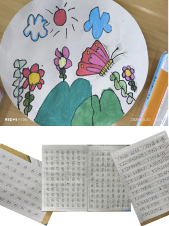 實(shí)踐期間,團(tuán)隊(duì)結(jié)合兒童特點(diǎn)開展多項(xiàng)活動(dòng)。繪畫教學(xué)中,楊誠嘉帶領(lǐng)兒童進(jìn)行基礎(chǔ)創(chuàng)作,丁俊協(xié)助分發(fā)工具,幫助包括盲童在內(nèi)的特殊兒童完成首次繪畫嘗試;手工環(huán)節(jié),葉珍兒通過手把手指導(dǎo),幫助孩子們掌握疊愛心技巧,提升其動(dòng)手能力;作業(yè)輔導(dǎo)時(shí),李文豪用生活化案例講解數(shù)學(xué)應(yīng)用題,王天天則通過標(biāo)注五角星等方式肯定兒童的作答成果,增強(qiáng)其學(xué)習(xí)信心。