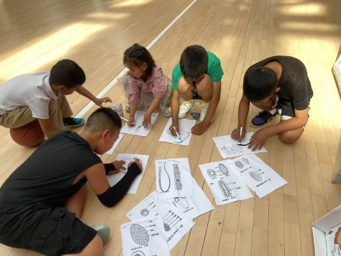 圖二 圖為實(shí)踐團(tuán)在蘆花鎮(zhèn)暑托班開展寄生蟲科普繪畫。羅英 供圖