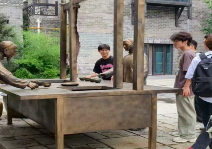 圖3:與仿舊制茶場景雕塑互動,古建背景添歷史氛圍(攝影:沈晨陽)