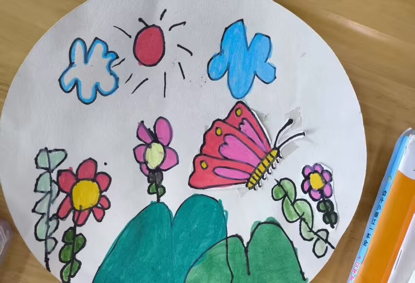 活動(dòng)伊始,團(tuán)隊(duì)成員走進(jìn)教室,繪畫互動(dòng)環(huán)節(jié)率先開啟。畫紙、彩筆整齊擺放,孩子們眼中滿是期待。成員們主動(dòng)陪伴,協(xié)助遞彩筆、調(diào)整畫紙,用鼓勵(lì)話語點(diǎn)亮孩子創(chuàng)作熱情。丁俊對(duì)畫畫的小女孩輕聲夸贊“你畫的蝴蝶像你一樣可愛”,讓孩子羞澀又認(rèn)真地投入創(chuàng)作,五彩畫作里,滿是童真與歡樂 。