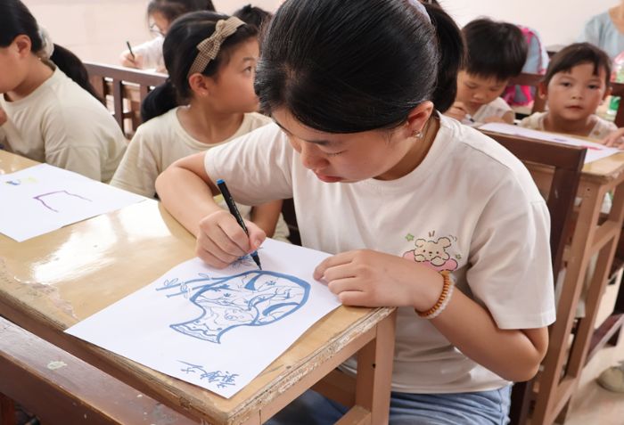 圖為陶瓷設(shè)計環(huán)節(jié)中孩子們繪制陶瓷設(shè)計圖