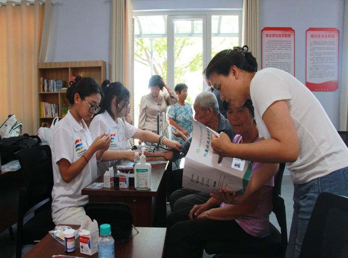 志愿服務隊聯(lián)合山東第二醫(yī)科大學附屬醫(yī)院、東營市人民醫(yī)院的多領域專家,深入基層一線開展義診服務,并針對常見疾病耐心問診,給出科學診療建議。服務隊充分發(fā)揮專業(yè)優(yōu)勢,為居民提供量血壓、測血糖等基礎醫(yī)療服務,對指標異常村民給予健康指導,叮囑定期監(jiān)測、及時就醫(yī)。此次義診活動,不僅讓村民在家門口就享受到了便捷、專業(yè)的醫(yī)療服務,也進一步提升了護理學院學子的社會實踐能力和團隊協(xié)作精神,展現(xiàn)了青年學生的責任與擔當。