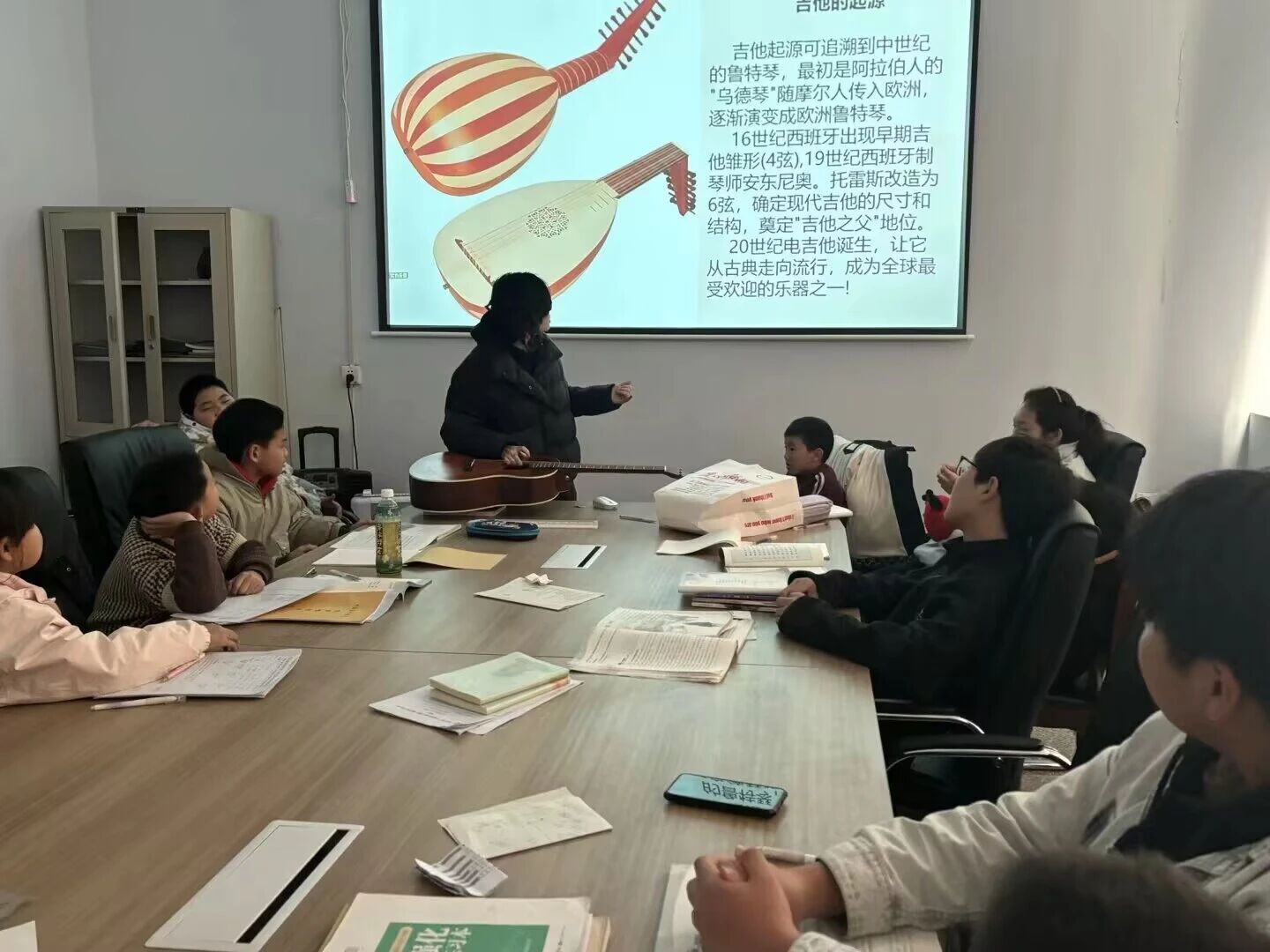 李宇晗老師的吉他課點燃了孩子們的音樂夢想。“認識吉他”課上,當她撥動琴弦彈出熟悉的兒歌時,孩子們瞬間安靜下來,眼神中滿是崇拜。到了“學習彈唱”課程,她手把手教孩子們按弦、撥弦,雖然剛開始手指會疼,但沒有一個孩子放棄,大家互相鼓勵,當簡單的旋律從自己指尖流出時,孩子們的臉上綻放出燦爛的笑容。有個叫小宇的孩子,因為家里條件有限,之前從未接觸過樂器,剛開始學吉他時,手指磨出了水泡,卻依然堅持練習。李宇晗看在眼里,疼在心里,特意為他準備了指套,并鼓勵他說:“你已經(jīng)做得很好了,每一次堅持都是在靠近夢想。”在支教結(jié)束時,小宇已經(jīng)能完整彈唱一首簡單的歌曲,他說:“我以后也要像李老師一樣,用音樂給別人帶來快樂。”