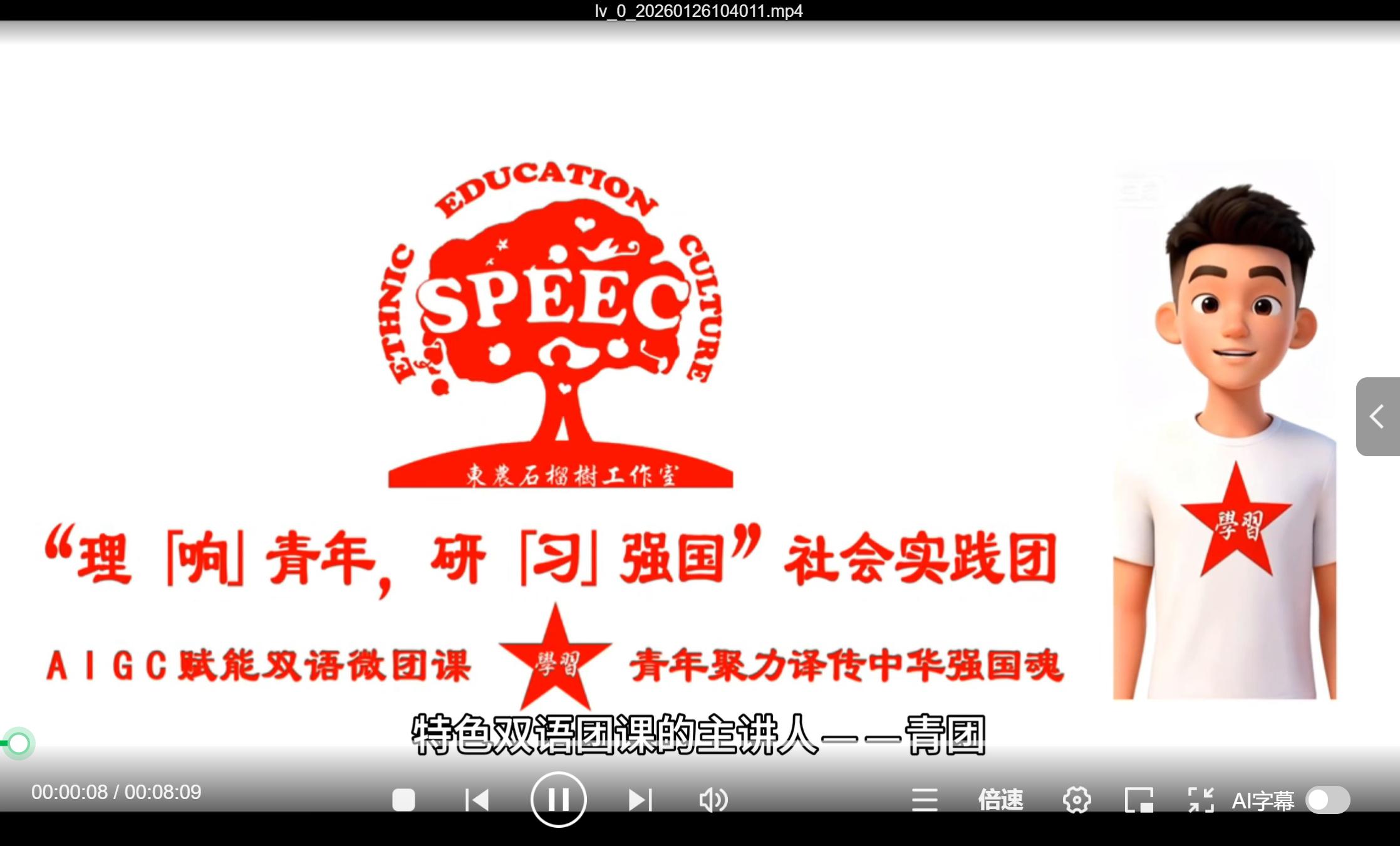 為深入學習宣傳習近平新時代中國特色社會主義思想和習近平文化思想,東北農(nóng)業(yè)大學文理學院理“響”青年雙語研“習”團以2026年寒假“三下鄉(xiāng)”社會實踐為契機,打造AIGC賦能的雙語微團課多模態(tài)傳播實踐項目,以“理論為基、語言為橋、實踐為爐”的融合模式,推動黨的創(chuàng)新理論青年化闡釋、國際化傳播,為鄉(xiāng)村文化振興注入青春動能。
