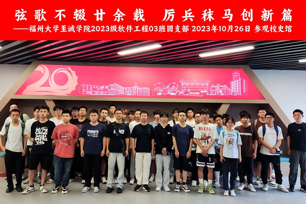 2023年是福州大學(xué)至誠學(xué)院成立20周年,為慶祝至誠學(xué)院二十周年慶,引導(dǎo)青年深學(xué)細悟篤行,激發(fā)強國有我的青春激情。福州大學(xué)至誠學(xué)院2023級軟件工程03班團支部舉辦“弦歌不輟廿余載,厲兵秣馬創(chuàng)新篇”系列活動。