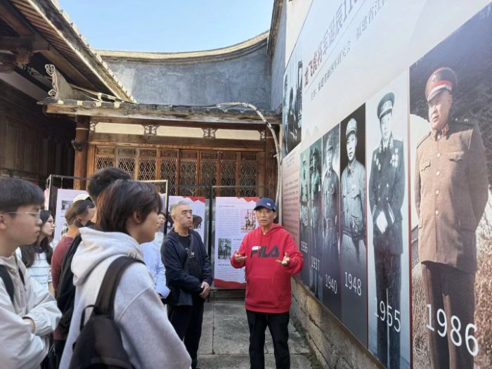 聆聽(tīng)紅色故事,感悟先輩精神 活動(dòng)伊始,龍飛虎將軍之子親臨現(xiàn)場(chǎng),為支部成員及在場(chǎng)游客深情講述將軍的革命事跡。從烽火歲月中隨周恩來(lái)同志開(kāi)展警衛(wèi)工作的嚴(yán)謹(jǐn)堅(jiān)守,到駐榕期間扎根群眾、統(tǒng)籌抗戰(zhàn)聯(lián)絡(luò)的擔(dān)當(dāng)付出,那些藏在老照片里的崢嶸過(guò)往、沉淀在書(shū)信中的赤誠(chéng)初心,在他的娓娓道來(lái)中鮮活重現(xiàn)。講述過(guò)程中,同學(xué)們認(rèn)真聆聽(tīng),不時(shí)記錄下感人至深的細(xì)節(jié)。將軍在危難時(shí)刻展現(xiàn)出的睿智勇敢,在平凡崗位上恪守的忠誠(chéng)信念,讓在場(chǎng)的每一位同學(xué)深受觸動(dòng)。那些生動(dòng)的革命故事,那些感人至深的歷史細(xì)節(jié),讓先輩的堅(jiān)毅信念與為民情懷跨越時(shí)空,直抵人心。