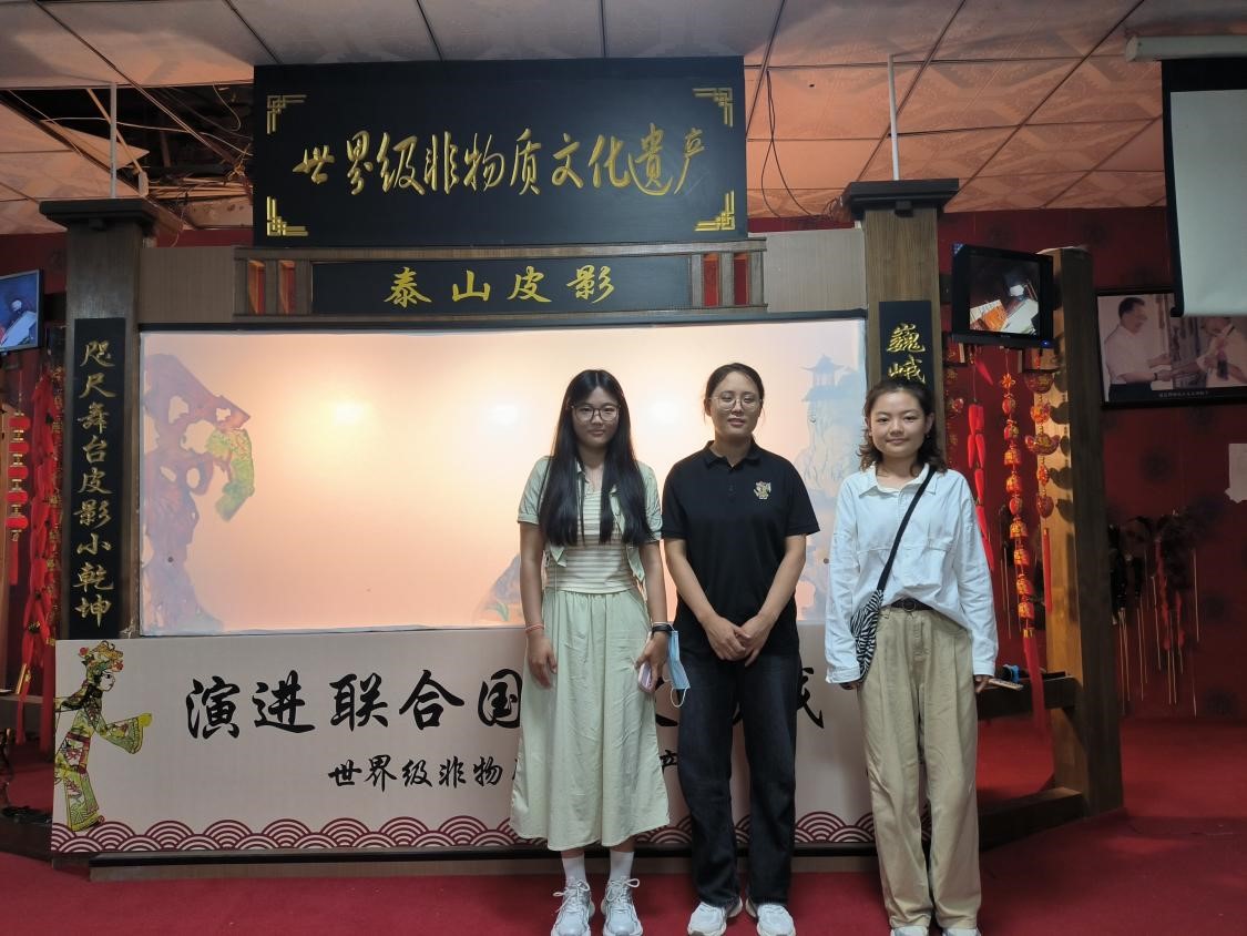 圖為實(shí)踐隊(duì)員與泰山皮影表演者合影 中國青年網(wǎng)通訊員 李佳一 供圖