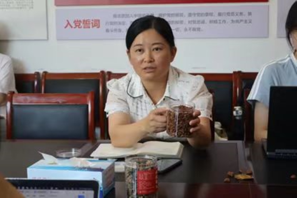 圖為磡頭村洪書(shū)記向小分隊(duì)成員們介紹家朋鄉(xiāng)山核桃產(chǎn)品時(shí)的場(chǎng)景。