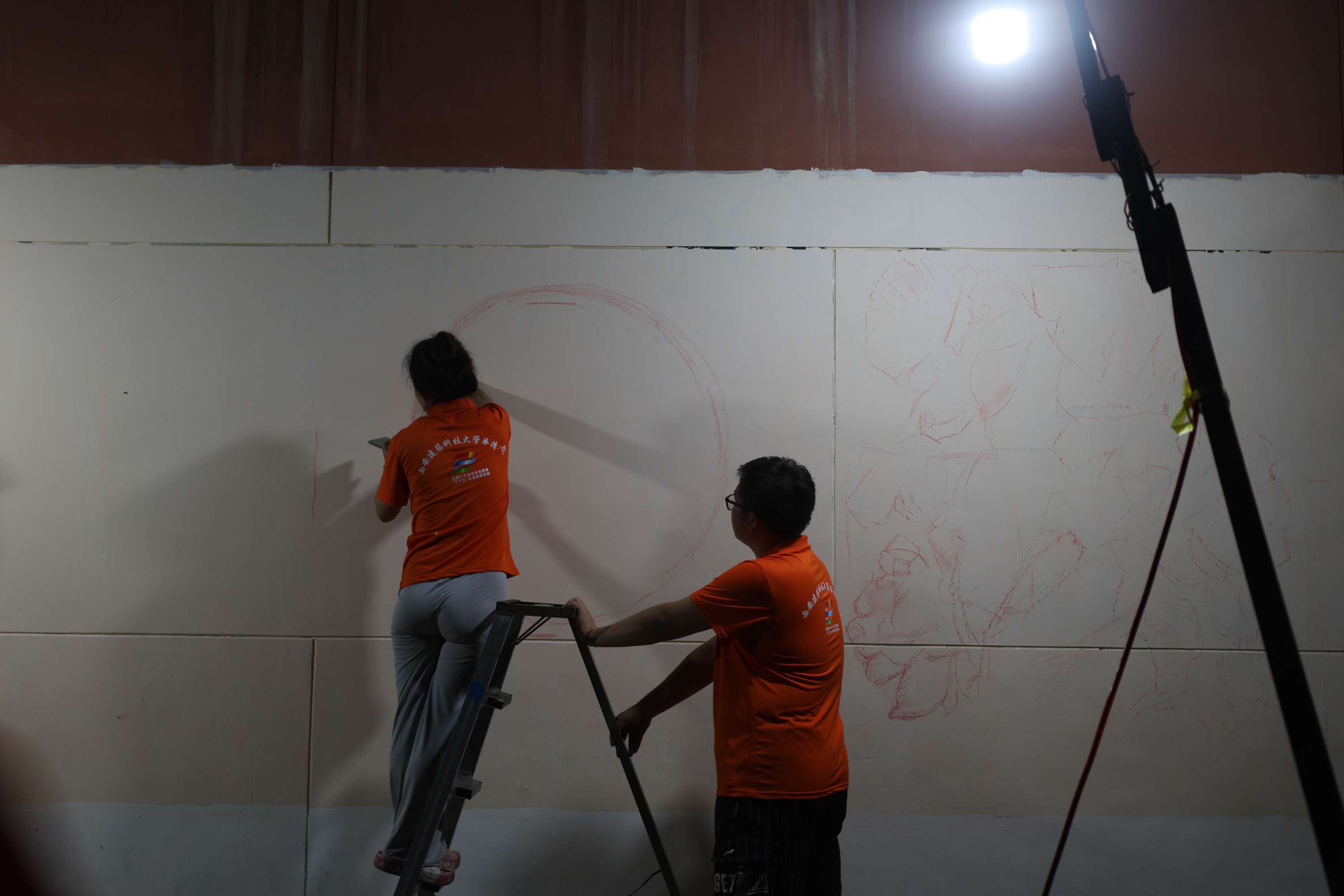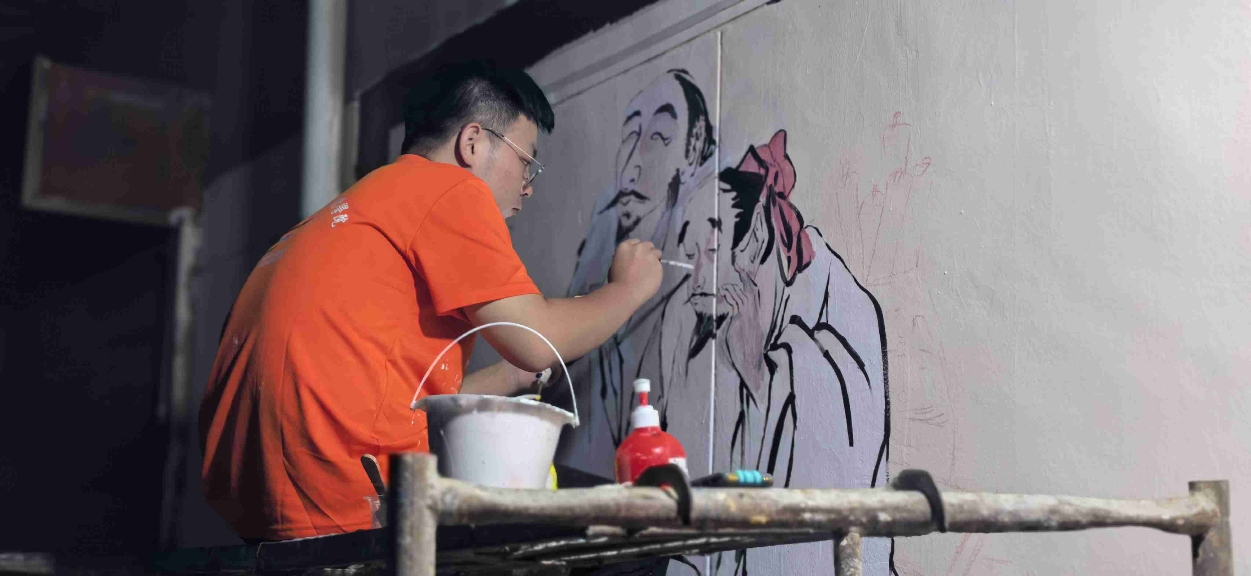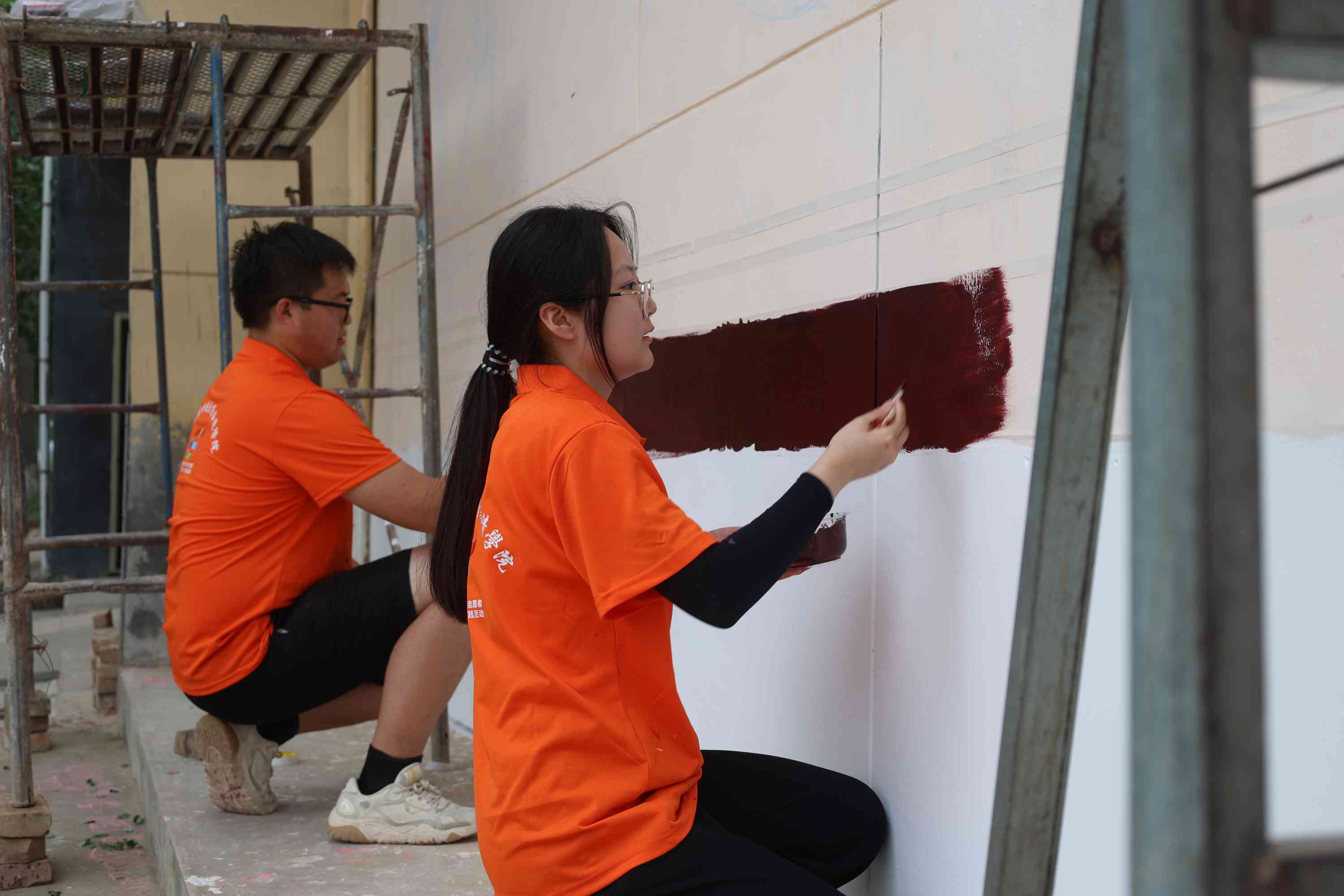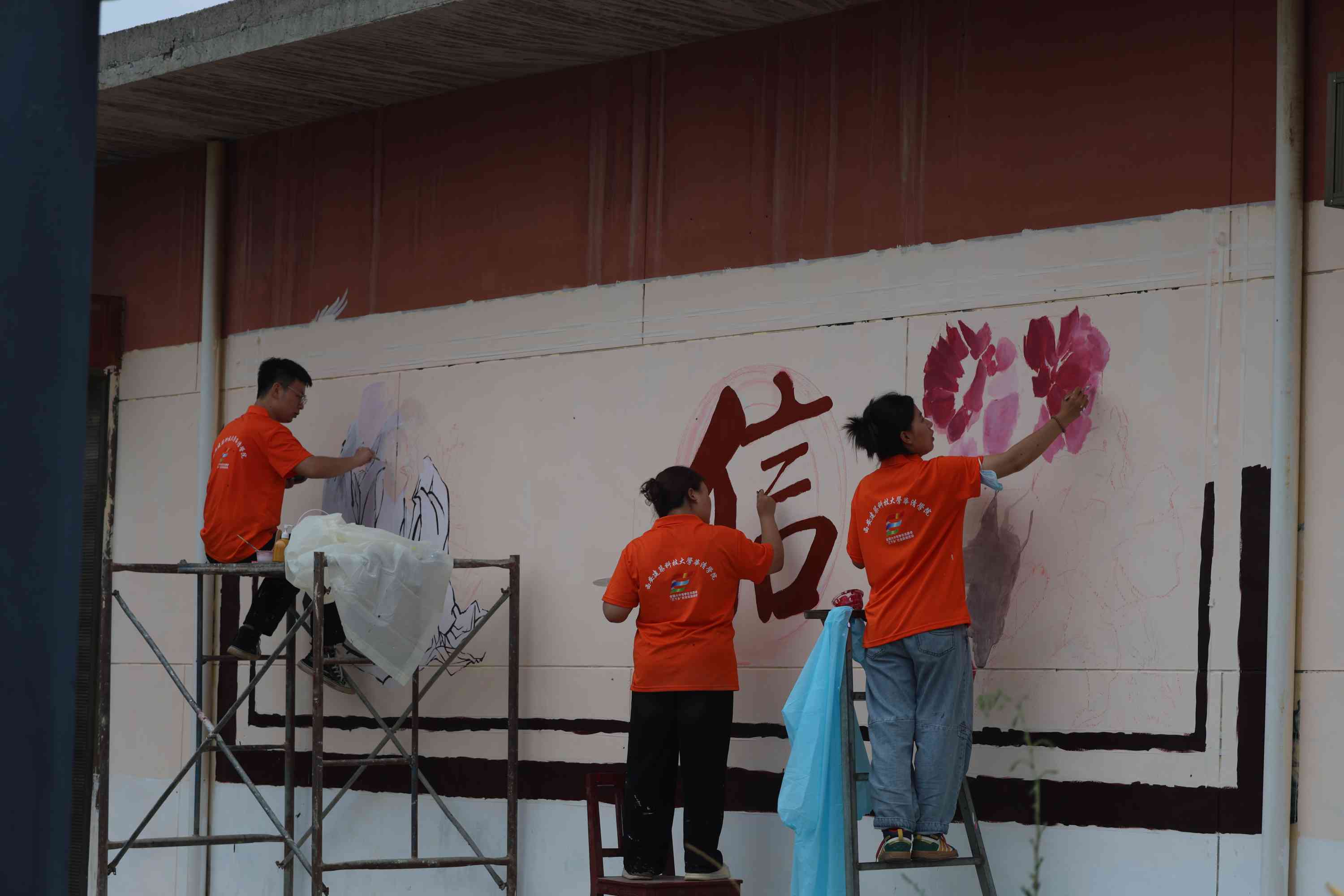 在墻繪創(chuàng)作過程中,天公不作美,大雨傾盆而下,但這并未澆滅實(shí)踐團(tuán)成員們的熱情與決心。雷牙村第二黨支部書記申金良和村民們紛紛伸出援手,為此次墻繪活動(dòng)做好后勤保障,給予了團(tuán)隊(duì)極大的支持與幫助。他們幫忙搬運(yùn)顏料、協(xié)助搭建腳手架、雨棚,在夜晚幫成員們撐起一盞明燈,場(chǎng)面十分溫馨。他們還表示:“這是我們自己的家鄉(xiāng),能為家鄉(xiāng)的文化建設(shè)出一份力,我們感到非常自豪。”
