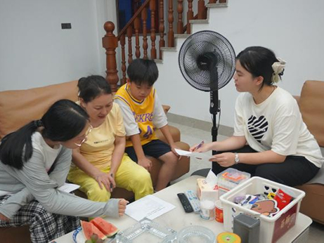 “蔡老師,你快進(jìn)來(lái),我給你介紹我的爸爸媽媽!”一位小朋友緊緊攥著團(tuán)隊(duì)成員蔡同學(xué)的手往家里領(lǐng)。據(jù)了解,團(tuán)隊(duì)成員目前已累計(jì)家訪和“送教入戶”30余次、步行總里程超40公里,為35余名同學(xué)及其家庭拍攝全家福;除此之外,也因地制宜開(kāi)展“小小廚神”——與小朋友在家里為父母做一頓飯、“用英文介紹我的家庭成員”等特色活動(dòng),真正將教育引入到孩子們生活的方方面面中。