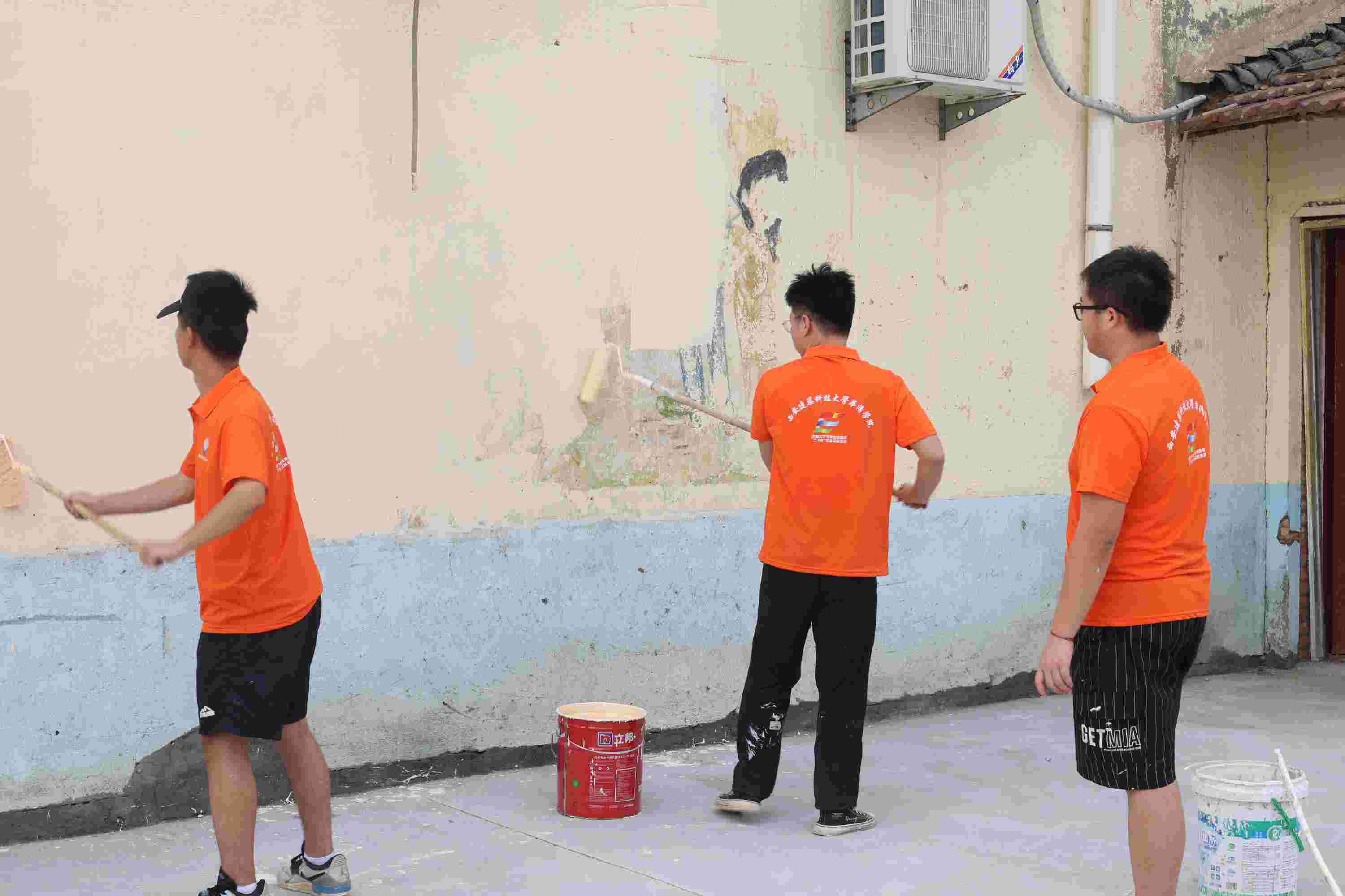 抵達(dá)目的地后,實(shí)踐團(tuán)沒有片刻停歇,立即投入到緊張而有序的工作中。首當(dāng)其沖的任務(wù)是清理墻面,這是繪制美麗圖案的前提。有的墻因?yàn)槟昃檬?,布滿了斑駁的痕跡;有的墻則因?yàn)殚L期暴露在風(fēng)吹雨打中,變得黯淡無光。面對斑駁的墻面,團(tuán)隊(duì)成員們分工明確,有的手持鏟子鏟除頑固污漬,有的則用砂紙細(xì)心打磨,力求每一寸墻面都能恢復(fù)平整光滑。汗水浸濕了衣背,但大家的臉上卻洋溢著滿足與自豪的笑容。經(jīng)過數(shù)小時(shí)的努力,原本灰暗的墻面煥然一新,為接下來的藝術(shù)創(chuàng)作奠定了堅(jiān)實(shí)的基礎(chǔ)。