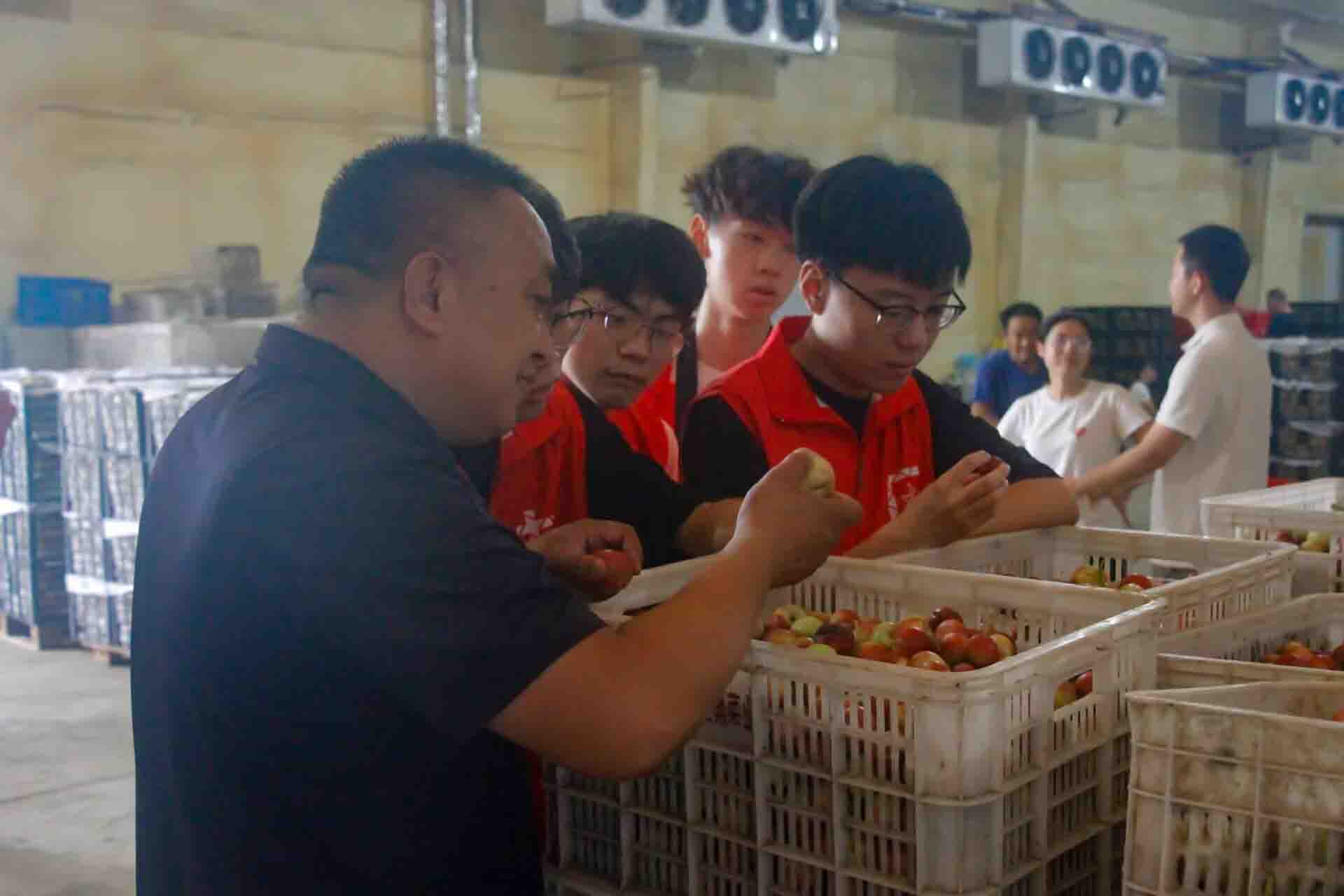 馬書記和王書記帶領(lǐng)團(tuán)隊(duì)參觀了當(dāng)?shù)孛厶液献魃绲能囬g以及冷庫,在車間中大家看到了冷庫門口堆放的大量蜜桃,并積極參與了村民們分揀、裝箱的過程,其桃子品種多、品質(zhì)高,且銷售半徑橫跨廣東、天津、北京及省內(nèi)各大城市,銷售前景廣闊,每年都給村集體和村民帶來可觀的收益。隨后團(tuán)隊(duì)有幸品嘗了當(dāng)?shù)氐?ldquo;香妃桃”,香甜可口的口感讓大家贊不絕口。