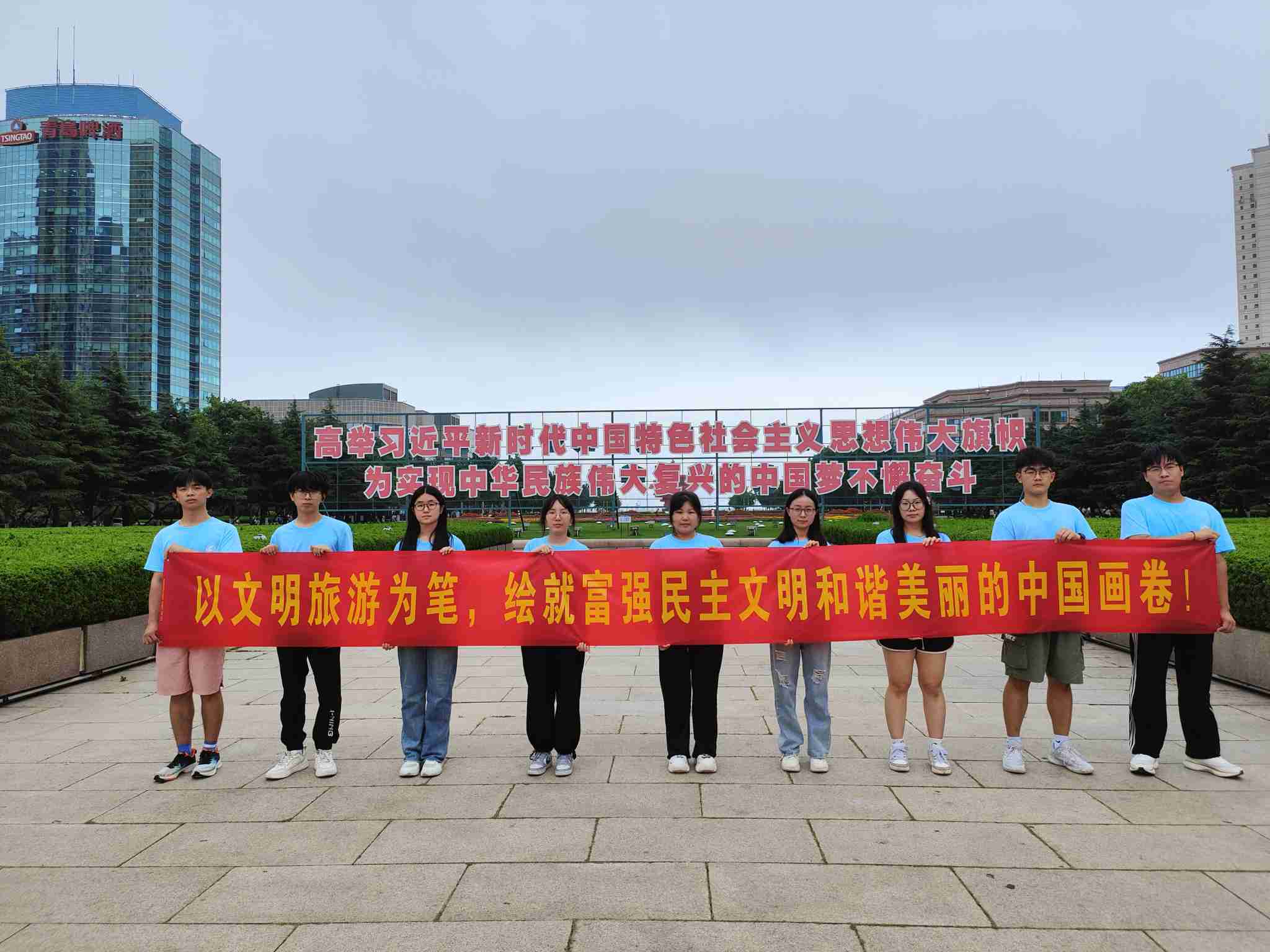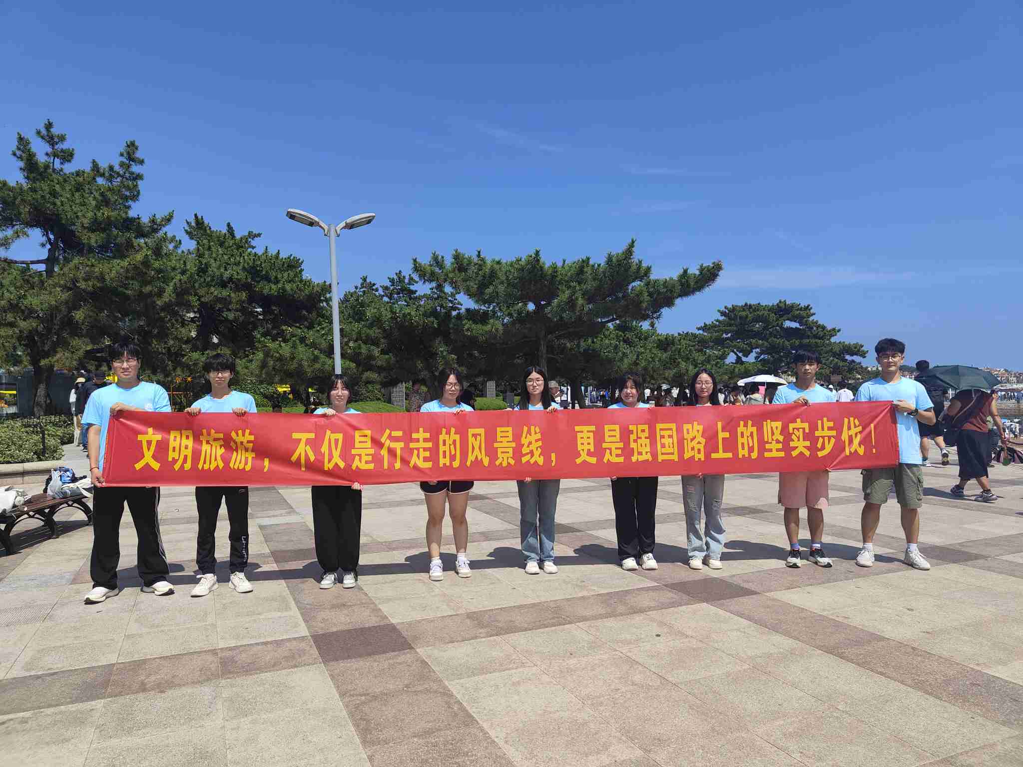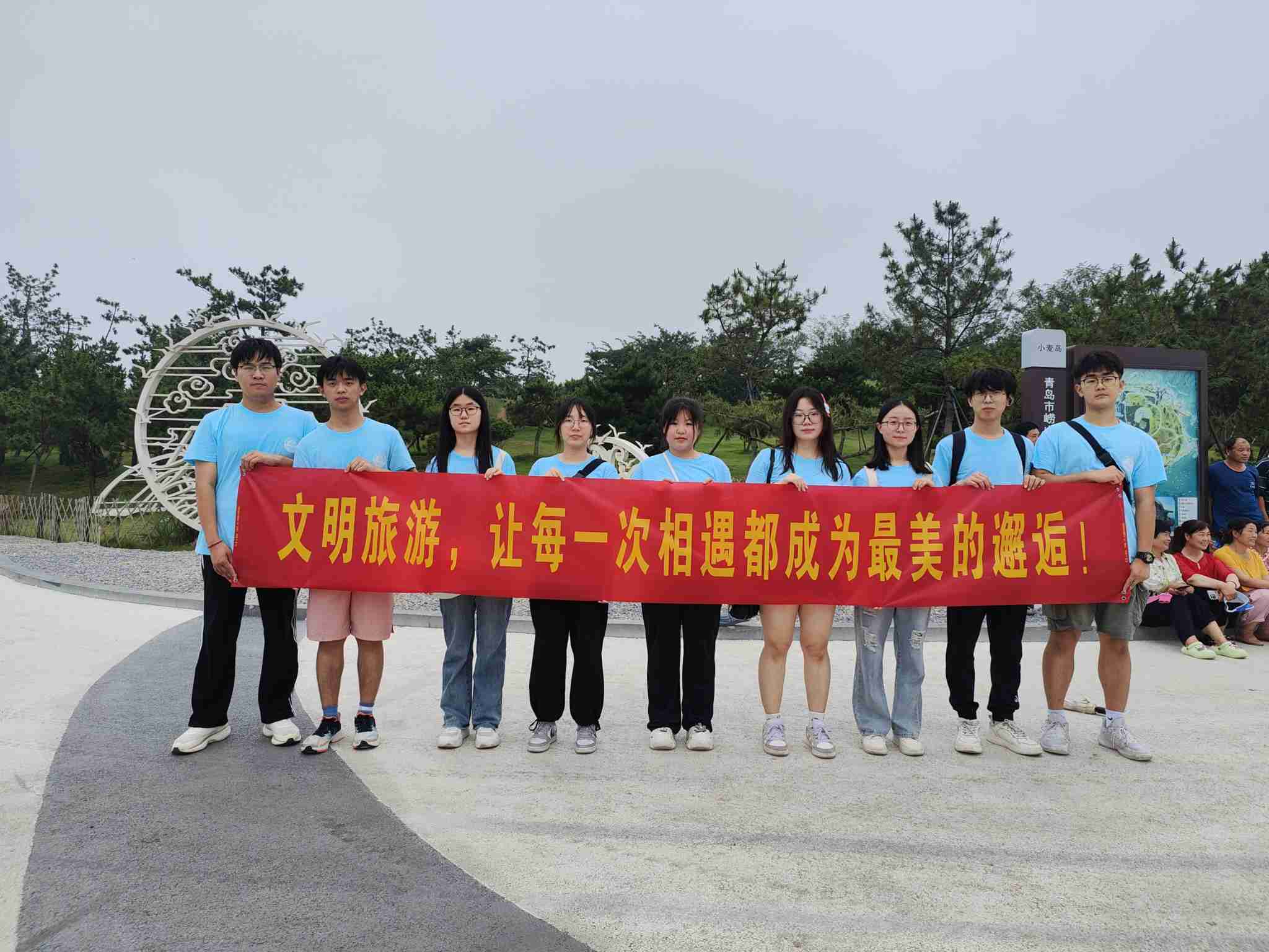 2024年7月20日,青島科技大學(xué)赴青島市“巡禮藍海情,筑夢文明行”文明旅游實踐團隊赴青島市五四廣場、小麥島、棧橋參觀學(xué)習(xí),宣傳文明旅游,倡導(dǎo)綠色出行。