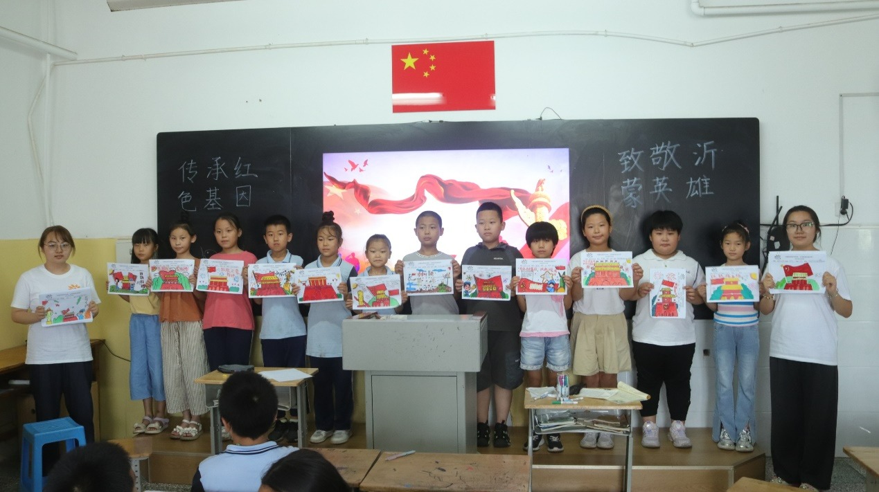紅色文化是中國共產(chǎn)黨和中國人民寶貴的精神財富,它承載著中華民族的偉大歷史和光榮傳統(tǒng)。實踐團成員張舒涵,朱欣語將紅色文化融入美術(shù)課堂,帶領(lǐng)學生們回望波瀾壯闊的偉大復(fù)興之路。朱欣語通過講述沂蒙紅嫂故事,引領(lǐng)同學們手繪紅色手抄報,引導(dǎo)孩子們領(lǐng)悟沂蒙精神,傳承好紅色基因。在實踐中,隊員們注重把紅色文化與理論教學、實踐教學等多元化教學模式相結(jié)合,將愛黨、愛國、愛社會主義的情懷深植于寨郝學子的心靈深處。