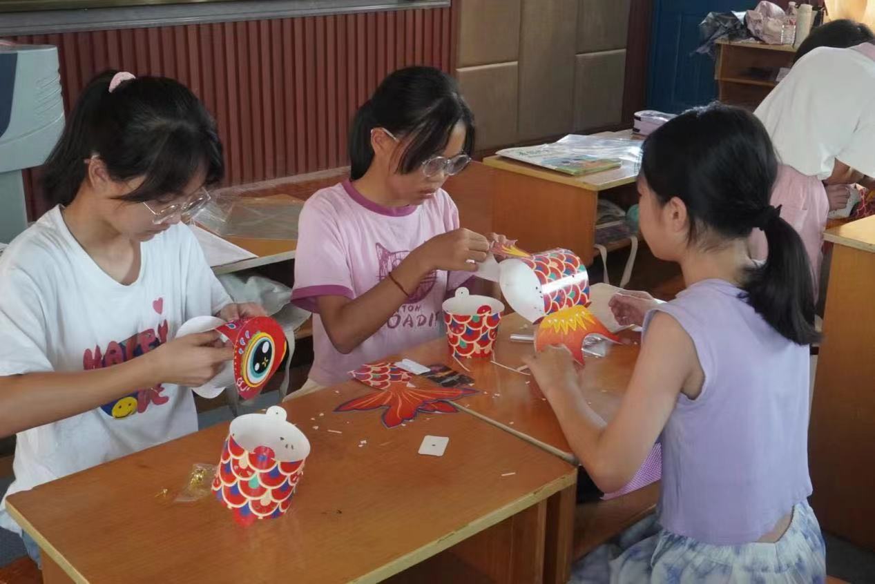 在親身體驗(yàn)非遺魚燈制作之后,小分隊(duì)成員們毅然決定也將這一技藝帶入課堂。7月24日上午,魚燈制作課程在高塘學(xué)校舉行。黃老師首先以生動的語言為學(xué)生們描繪了魚燈的歷史淵源與獨(dú)特魅力,激發(fā)了大家對這門古老技藝的濃厚興趣。隨后,余老師詳細(xì)講解了魚燈的結(jié)構(gòu)與制作流程,并親自示范。
