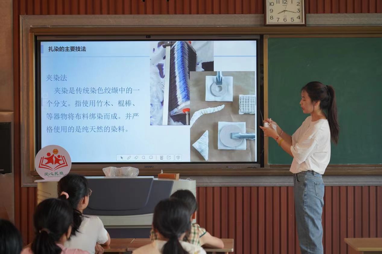 圖 2 老師講解扎染(滴水行動之遇見小分隊(duì) 卜天玥 供圖)