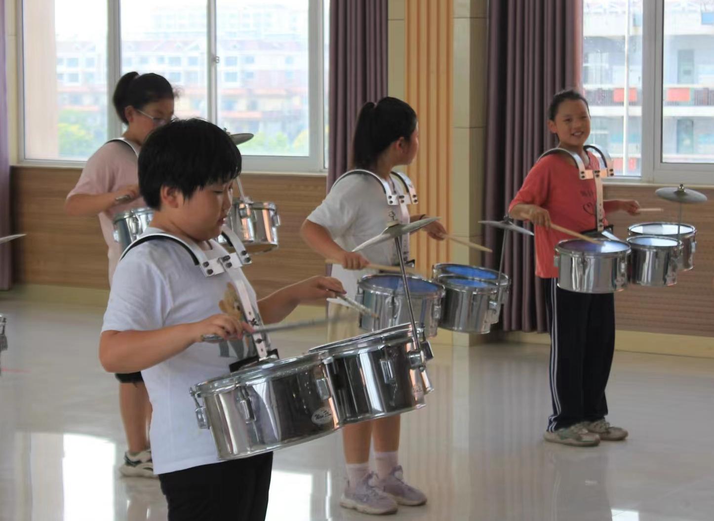 鼓點(diǎn)鏗鏘,號(hào)聲雄壯。實(shí)踐團(tuán)成員們踴躍協(xié)助音樂老師展開鼓號(hào)隊(duì)教學(xué)活動(dòng),他們開創(chuàng)性地運(yùn)用了“高年級(jí)幫扶低年級(jí)、一幫一”的教學(xué)模式,既彰顯了高年級(jí)學(xué)生的榜樣力量,又推動(dòng)了低年級(jí)學(xué)生的迅速成長(zhǎng)。節(jié)奏銘記于心,旋律掌控于手,鼓號(hào)隊(duì)的訓(xùn)練滿溢著激情與力量。實(shí)踐團(tuán)成員們與孩子們一同直面挑戰(zhàn),從基礎(chǔ)的樂理知識(shí)至復(fù)雜的演奏技巧,逐步深化。一次次的反復(fù),一次次的磨合,一支初顯規(guī)模的鼓樂隊(duì)已然成形。
