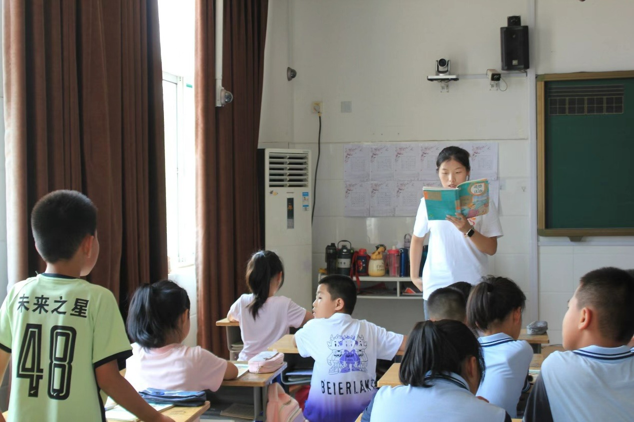圖為實(shí)踐團(tuán)成員郝湘婷給孩子們講道法課,山東理工大學(xué)李穎能提供