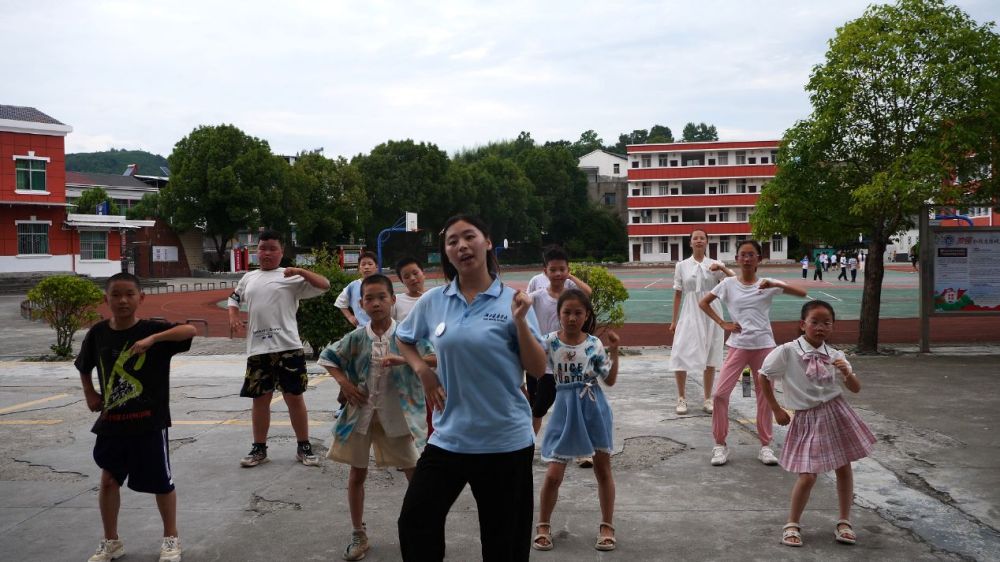 圖為隊員帶領(lǐng)孩子們上舞蹈課