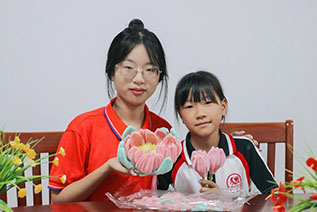 “老師!我會(huì)粘花蕊啦!你看!好不好看?”在“油你成蔭”多彩課堂上,孩子們學(xué)著用扭扭棒制作著蓮花燈,他們用不同顏色的毛絨鐵絲棒依次扭出花托、花瓣和葉子,在“油你成蔭”實(shí)踐團(tuán)成員的指導(dǎo)下小心地使用膠槍將每個(gè)部分組裝起來(lái),最后粘上花蕊,組成了一朵精致的蓮花。