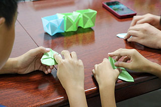 圖為孩子們折紙過(guò)程。梁宇欣 攝