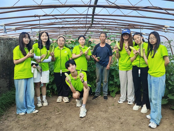 隊(duì)員們走進(jìn)大棚里,與村民們一起勞動(dòng),盡管汗水浸濕了衣背,但隊(duì)員們熱情高漲,一邊摘黃瓜,一邊學(xué)習(xí)農(nóng)作物的采摘要點(diǎn)。村民們的熱情講解也讓我們對(duì)農(nóng)業(yè)有了更直觀的了解,讓他們感受到了勞動(dòng)的喜悅和收獲的滿足。