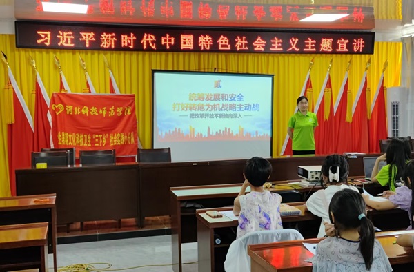 最后,宣講員強(qiáng)調(diào)新時(shí)代中國(guó)特色社會(huì)主義思想對(duì)于國(guó)家和村民個(gè)人的重要意義,號(hào)召村民們積極學(xué)習(xí)新思想,將其轉(zhuǎn)化為實(shí)際行動(dòng),共同為家鄉(xiāng)的發(fā)展和振興貢獻(xiàn)自己的一份力量。