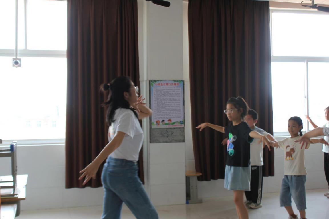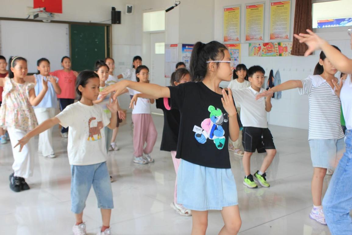 圖為寨郝中心學(xué)校學(xué)生練習(xí)舞蹈動(dòng)作。山東理工大學(xué)付興澤提供。