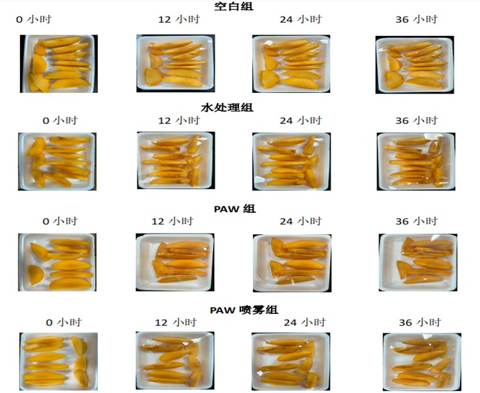 下午3時,社會實踐團(tuán)隊在負(fù)責(zé)人的帶領(lǐng)下來到分揀基地的蜜桃品種研發(fā)實驗室,實踐團(tuán)成員以“岱崮黃蟠桃”為實驗對象進(jìn)行蜜桃保鮮適應(yīng)性試驗。實驗對切塊蜜桃進(jìn)行四種不同的處理方法,并觀察36小時蜜桃腐敗情況,每12小時拍照記錄一次。實驗結(jié)果表明,低溫等離子體活化水處理對岱崮黃蟠桃有明顯的保鮮效果,負(fù)責(zé)人看完實驗結(jié)果后講道:“保鮮效果如此明顯的同時讓我更意外的是操作也如此便捷,而且據(jù)我了解這種技術(shù)還是安全無害的,這便是科技助農(nóng)!”