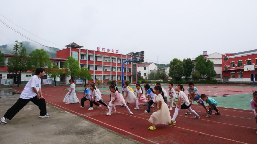 4.體育課:隊員肖博文帶領(lǐng)孩子們進行廣播體操的教學和正步踏步的練習,鍛煉身體素質(zhì),培養(yǎng)團隊合作精神。