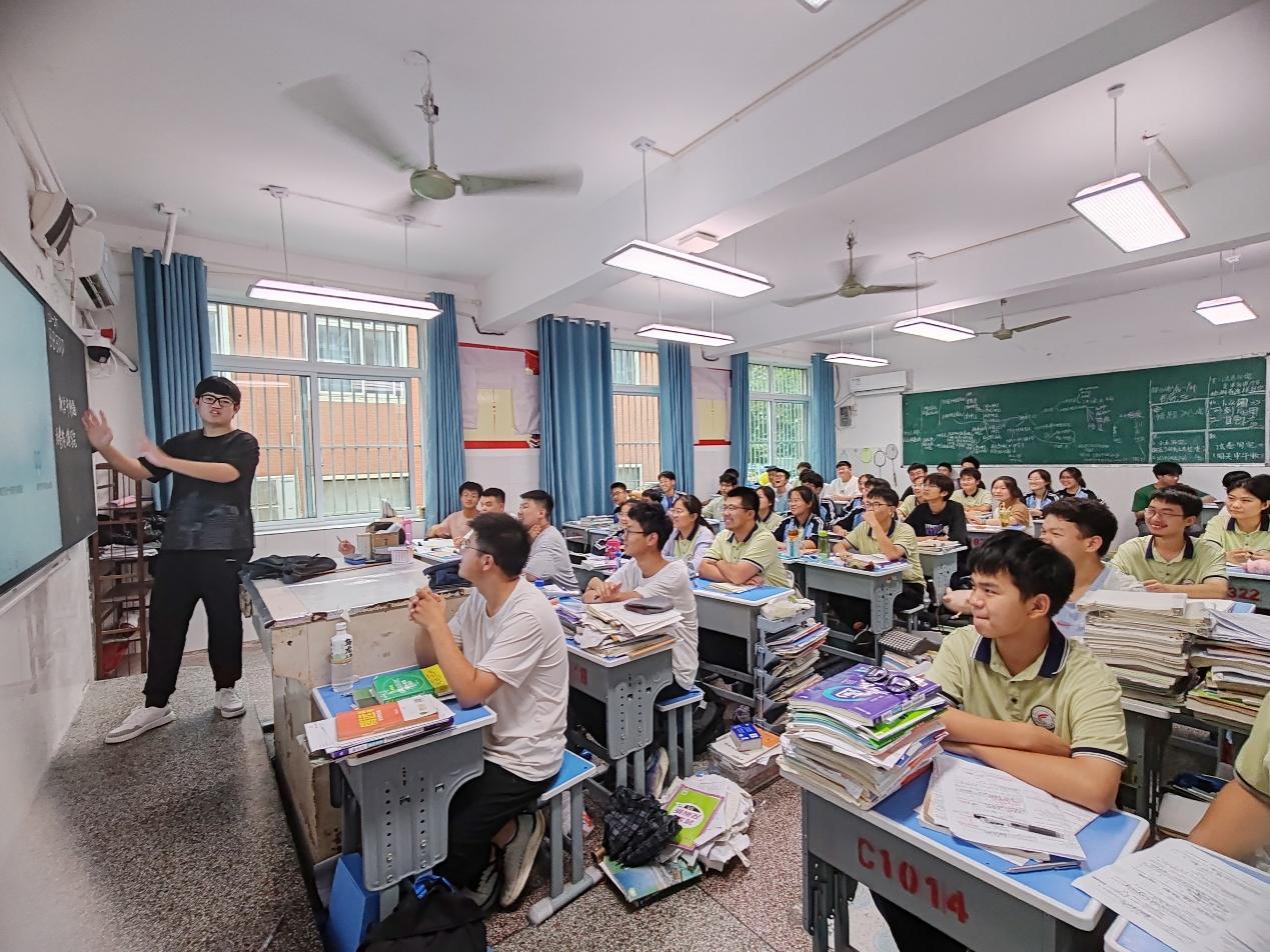 互動(dòng)激熱情,青春思辨展風(fēng)采在母校的熱情接待后,實(shí)踐隊(duì)伍滿懷激情地走進(jìn)了高中校園里的一間課堂。通過展示精心設(shè)計(jì)的PPT以及運(yùn)用生動(dòng)形象的講解方式,講解員詳細(xì)介紹了習(xí)近平新時(shí)代中國(guó)特色社會(huì)主義思想的形成背景、主要內(nèi)容和重要意義。在宣講過程中,宣講員注重將理論知識(shí)與現(xiàn)實(shí)生活相結(jié)合,用通俗易懂的語(yǔ)言和鮮活的事例闡述新思想的深刻內(nèi)涵和時(shí)代價(jià)值。此次宣講活動(dòng)的宣講內(nèi)容既嚴(yán)謹(jǐn)又生動(dòng),不僅引起了同學(xué)們的強(qiáng)烈共鳴和熱烈反響,還激發(fā)了他們學(xué)習(xí)新思想的濃厚興趣和熱情。為了增強(qiáng)宣講的互動(dòng)性和實(shí)效性,策劃組還在宣講過程中穿插了多個(gè)互動(dòng)環(huán)節(jié)。實(shí)踐隊(duì)員鼓勵(lì)同學(xué)們積極提問、發(fā)表看法和分享心得體會(huì)。針對(duì)同學(xué)們的問題,實(shí)踐團(tuán)隊(duì)成員耐心解答、悉心引導(dǎo),幫助他們更加深入地理解新思想的精髓和要義。實(shí)踐團(tuán)隊(duì)還通過組織小組討論、進(jìn)行角色扮演等互動(dòng)形式激發(fā)同學(xué)們的參與熱情和創(chuàng)造力,讓他們?cè)谳p松愉快的氛圍中深化對(duì)新思想的理解和認(rèn)識(shí)。