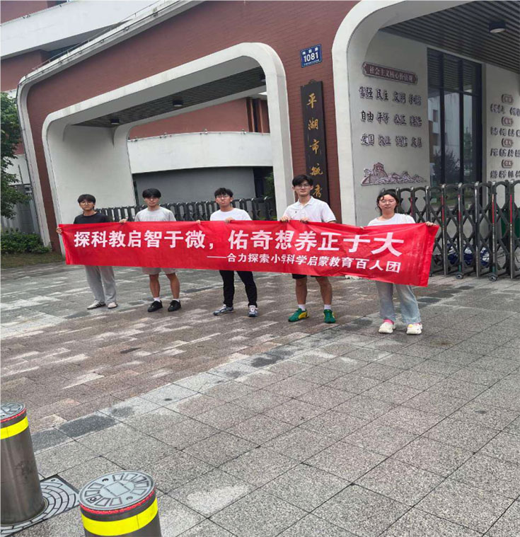 為積極響應(yīng)國家科教興國戰(zhàn)略,為科學(xué)啟蒙事業(yè)貢獻(xiàn)力量,王杰、邱智鵬、田碩、朱昱丞、張?zhí)祉嵨迕瑢W(xué)于6月24日下午踏入平湖市毓秀小學(xué)校園內(nèi),展開主題為“合力探索小學(xué)科學(xué)啟蒙教育”的暑期社會實(shí)踐活動(dòng)。