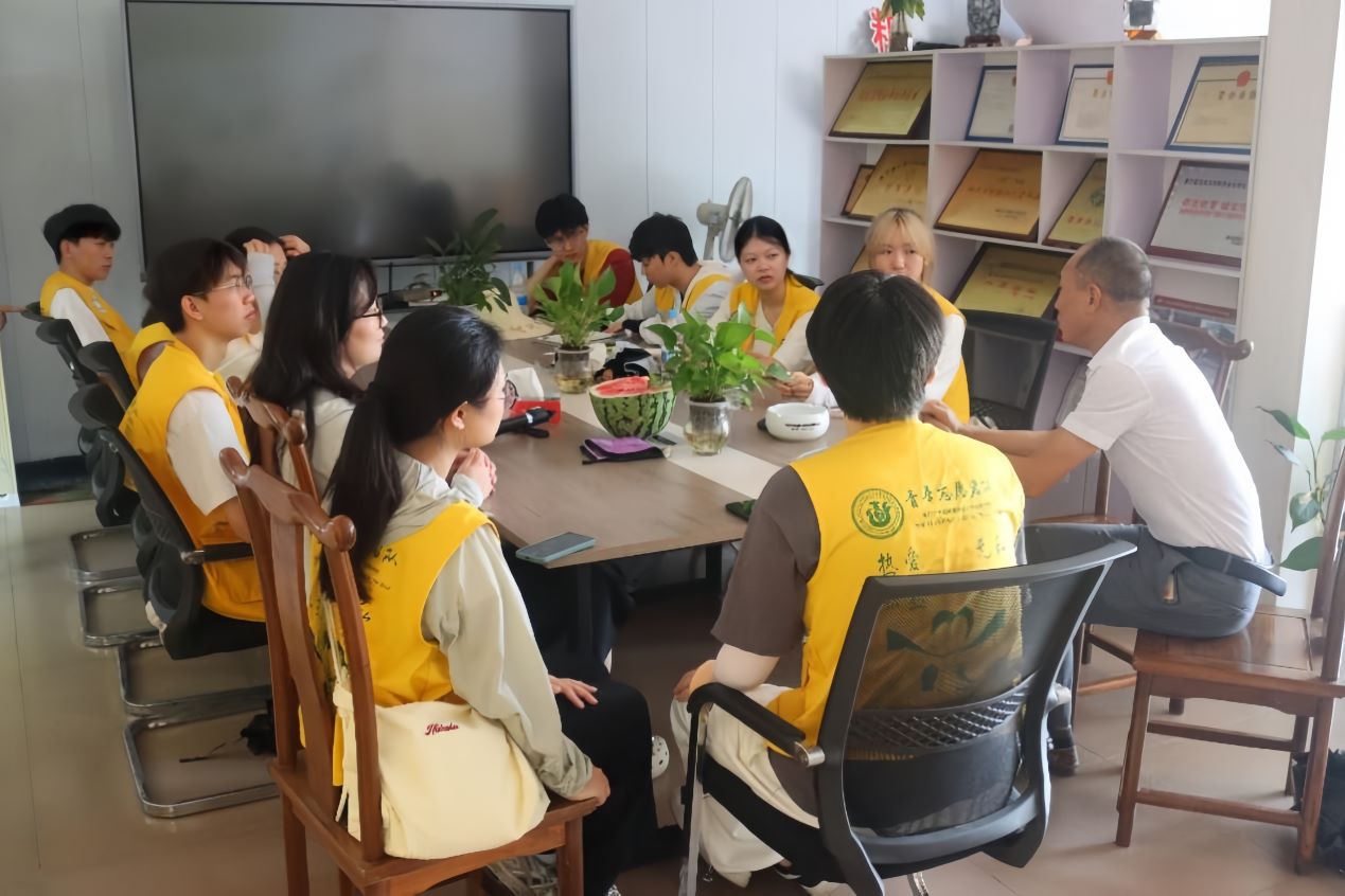 圖為負責人向?qū)嵺`隊員們介紹合作社 許燁 攝
