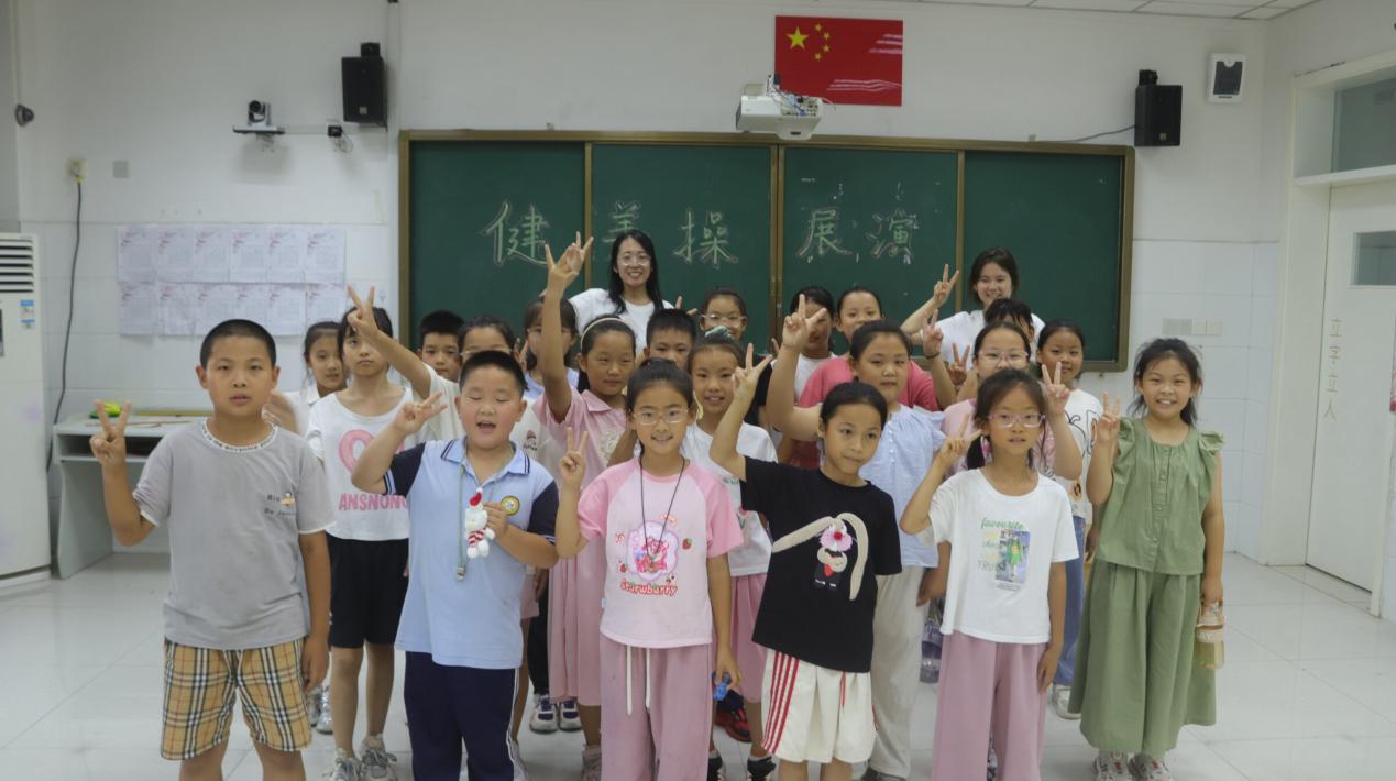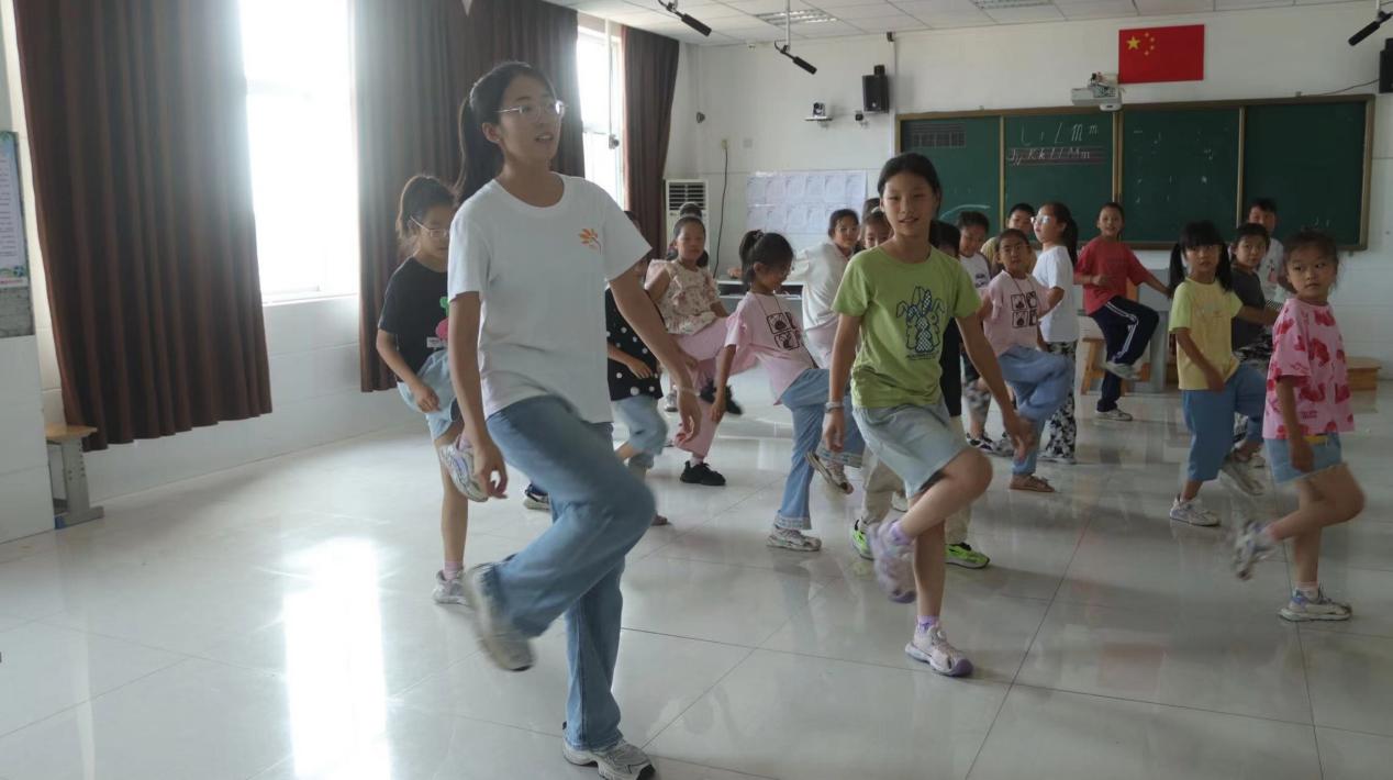 在日常訓(xùn)練中,實踐團成員紀(jì)艷艷耐心地指導(dǎo)著每一個動作,引領(lǐng)著健美操隊的每一步成長。從基本的步伐到復(fù)雜的組合動作,紀(jì)艷艷都認(rèn)真講解,力求精準(zhǔn)到位。孩子們圍成半圈,認(rèn)真聆聽講解,生怕錯過任何一個關(guān)鍵信息。盡管孩子們臉上逐漸布滿了細(xì)密的汗珠,但他們的眼神愈發(fā)堅定。在不斷地挑戰(zhàn)自我、突破極限的過程中,同學(xué)們不僅提高了自己的健美操水平,更培養(yǎng)了堅韌不拔的意志和團隊合作精神。