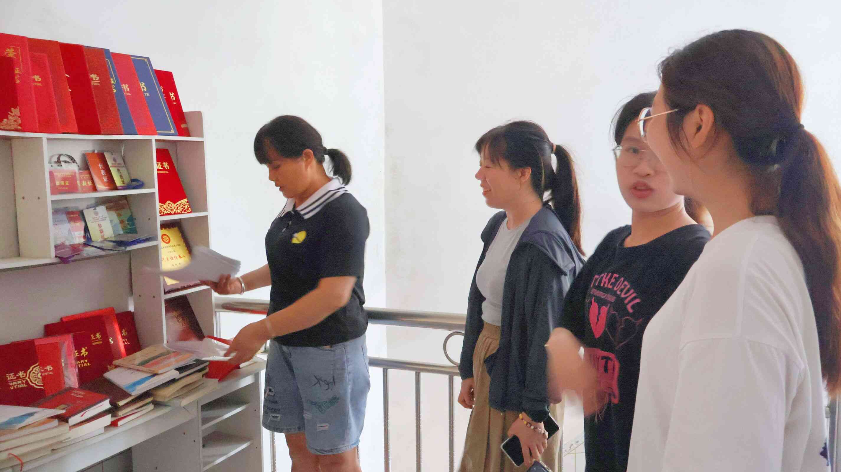 圖為文化傳承人為紅磚實(shí)踐隊(duì)展示其所獲得的榮譽(yù)。