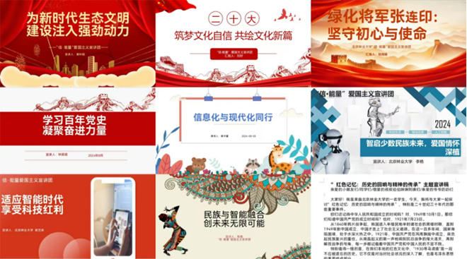 北京林業(yè)大學(xué)信息學(xué)院(人工智能學(xué)院)“信·能量”愛國主義宣講團(tuán)由13名同學(xué)組成,利用暑期時(shí)間,前往新疆哈密、青海西寧、貴州畢節(jié)等地基層社區(qū)、博物館、中小學(xué)校開展“基層行、心連心”項(xiàng)目,通過實(shí)地走訪、宣講、助力基層信息化等方式探訪中國式現(xiàn)代化的奮進(jìn)之路。我們以小故事講述大道理,以小載體烘托愛國大主題,深入學(xué)習(xí)貫徹“二十大”理論知識(shí),感悟紅色文化,厚植家國情懷、榮校情懷,全方面帶領(lǐng)同學(xué)們了解祖國的發(fā)展歷程、中國式現(xiàn)代化道路,致力打造信息學(xué)院(人工智能學(xué)院)愛國主義精品微課。