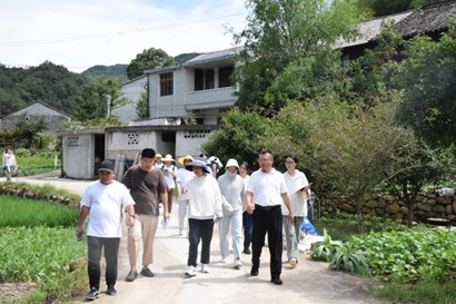 首先,調(diào)研團(tuán)隊(duì)走訪文化休憩長(zhǎng)廊的建設(shè)基地。團(tuán)隊(duì)成員們依托前期查閱慈圣村的歷史文獻(xiàn)、族譜、地方志,并且對(duì)村干部、村民進(jìn)行交流,了解他們對(duì)于構(gòu)建文化休憩長(zhǎng)廊的期望與需求,初步確立文化長(zhǎng)廊的主題設(shè)計(jì)與內(nèi)容規(guī)劃。隨行的村干部們表達(dá)了對(duì)文化休憩長(zhǎng)廊落成的期待,其有利于深入挖掘慈圣村的歷史文化和提升村民集體歸屬感。