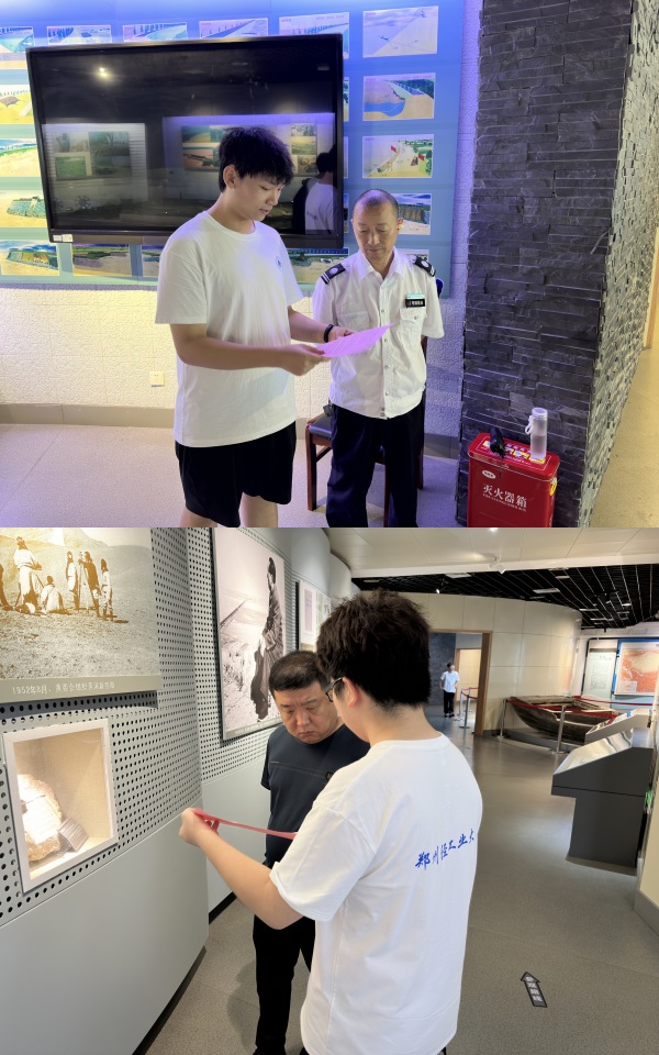 在此次活動中,鄭州輕工業(yè)大學(xué)“河小青”黃河生態(tài)環(huán)保宣講隊隊員們在黃河博物館跟隨講解員老師的步伐依次走進(jìn)黃河博物館的流域地理、民族搖籃、千秋治河、治河新篇、和諧之路五個展區(qū),這五個展區(qū)全面詮釋了黃河的自然史、文明史、治理史,涵蓋了黃河的過去、現(xiàn)在和未來。在了解黃河文化的同時,“河小青”黃河生態(tài)環(huán)保宣傳隊員們還向周圍群眾宣講保護(hù)黃河的長遠(yuǎn)意義和深刻內(nèi)涵。