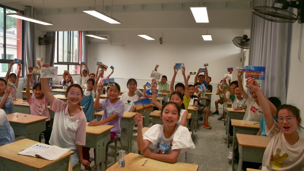 寫作課給予了孩子們表達(dá)自我、抒發(fā)情感的舞臺(tái)。隊(duì)員李宣瑩和胡卓祎圍繞“看世界”這一主題開展課程,通過看圖猜地的方式,介紹了香港、上海、北京等城市,同時(shí)也帶領(lǐng)著同學(xué)們認(rèn)識(shí)巴西、泰國(guó)、英國(guó)等國(guó)家,呈現(xiàn)了一幅幅生動(dòng)的世界風(fēng)景圖。