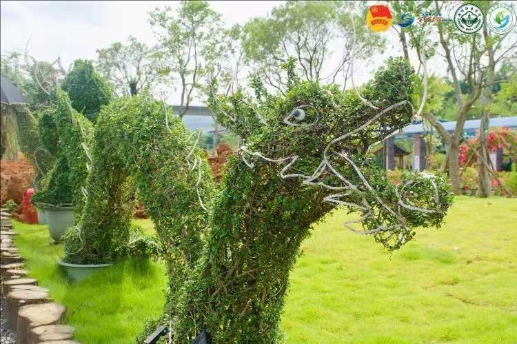 盆景師以福建茶樹(shù)為畫(huà)布,巧妙地將兩株茶樹(shù)相互交織,如同編織一段生命的詩(shī)篇。于剪刀舞動(dòng)間,賦予了這些植物新的生命形態(tài),創(chuàng)造出栩栩如生的動(dòng)物形象。在這里,你可以遇見(jiàn)蜿蜒盤旋的龍,它們似乎隨時(shí)準(zhǔn)備騰空而起;或是祥瑞之獸麒麟,其莊嚴(yán)威武的姿態(tài)令人肅然起敬;還有那優(yōu)雅的長(zhǎng)頸鹿,它們伸長(zhǎng)了脖子,仿佛在探尋遠(yuǎn)方的秘密。每一株盆景都是盆景師匠心獨(dú)運(yùn)的杰作,它們不僅是視覺(jué)的盛宴,更是心靈與自然和諧共舞的見(jiàn)證。
