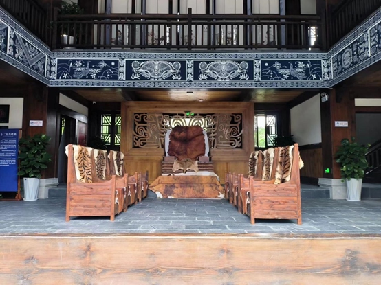 苗王宮,作為苗族文化的象征,始建于明朝,歷經(jīng)數(shù)百年風(fēng)雨,依舊巍然矗立。這里曾是苗族領(lǐng)袖的居所,不僅承載著苗族人民的智慧和精神,更見證了這個(gè)民族的輝煌與滄桑。石海苗王宮是清初有"川南苗王"之譽(yù)的興文苗族長(zhǎng)老舊寨,屬典型的干欄式建筑,現(xiàn)于舊址復(fù)建的苗寨,占地約1萬7千平方米,以欄桿式建筑為特色,按廊庭式組合型園林總體布局,所有建筑均為全木結(jié)構(gòu),青石鋪地,樹皮蓋頂,展示出了苗族人親近自然,融于自然的理念和智慧。