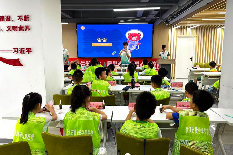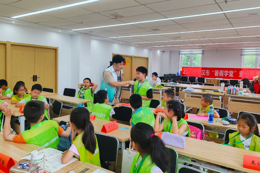 源和鋰電池社會(huì)實(shí)踐團(tuán)隊(duì)在東西湖區(qū)暑期托管班的宣講活動(dòng)上,一名學(xué)生回答宣講人提出有關(guān)鋰電池的問題。李雯婕 供圖