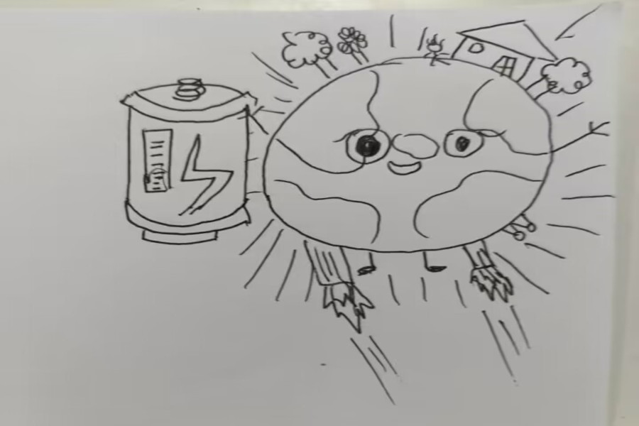 圖為源和鋰電池社會(huì)實(shí)踐團(tuán)隊(duì)在東西湖區(qū)暑期托管班做宣講活動(dòng),在互動(dòng)環(huán)節(jié)中托管班的一名學(xué)生繪畫的他心中的鋰電池。羅明 供圖