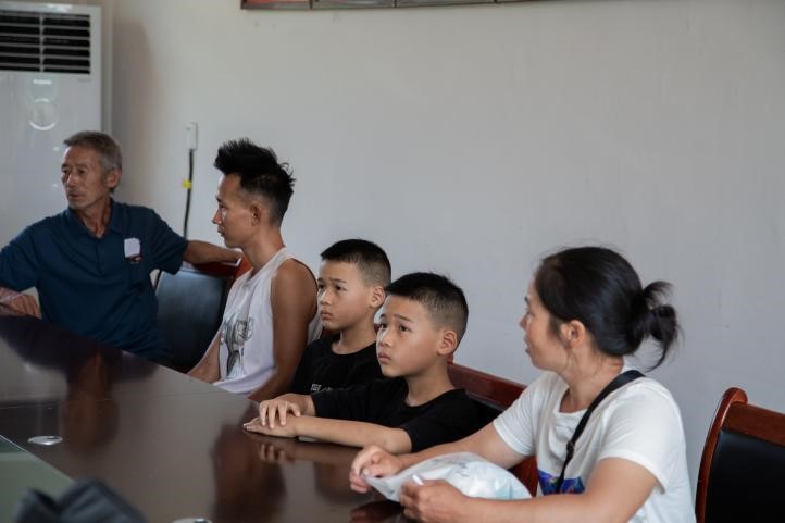 實(shí)踐團(tuán)成員張佳慧、金俊偉在湖南省新晃侗族自治縣涼傘鎮(zhèn)大田村與村干部會(huì)面 余露露攝