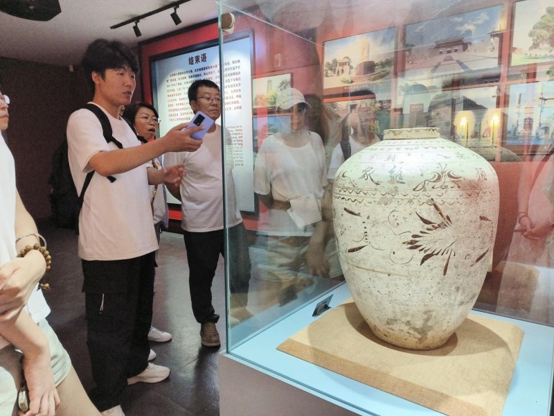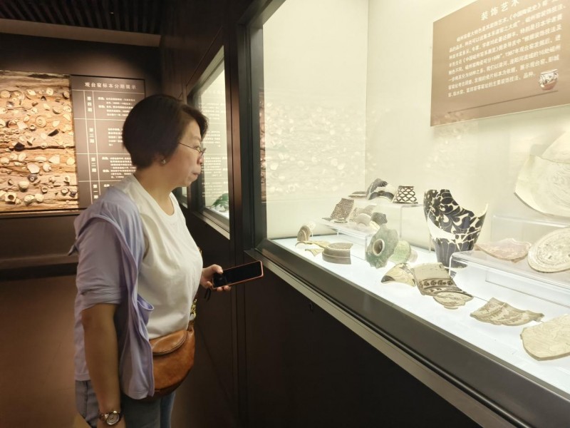 圖為實(shí)踐團(tuán)帶隊(duì)老師在磁州窯博物館觀看碎陶瓷。通訊員 麻曉茹 供圖